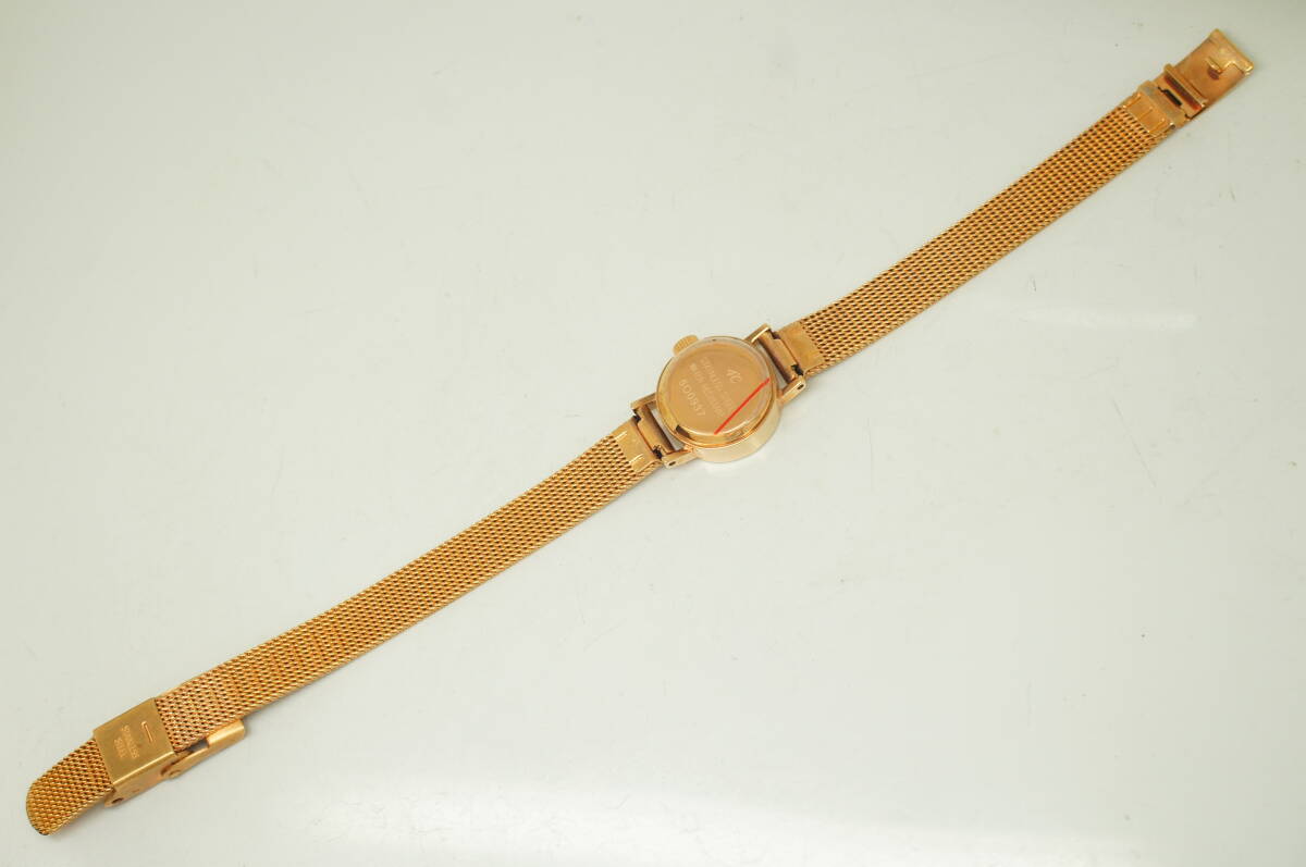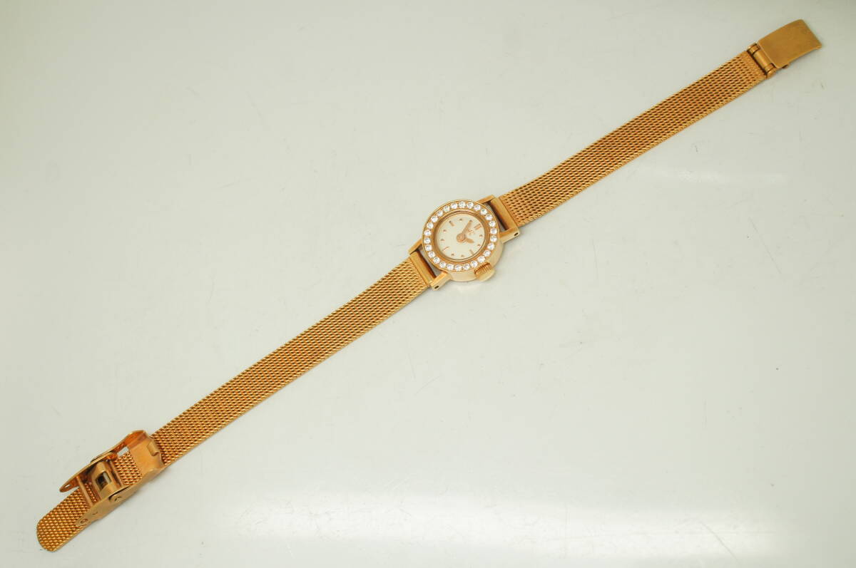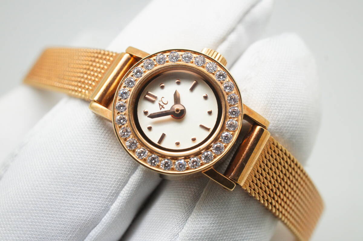 E129●作動良好 箱付 未使用デッドストック 4℃ ヨンドシー ラインストーン レディース腕時計 ゴールド金 お洒落 クォーツ