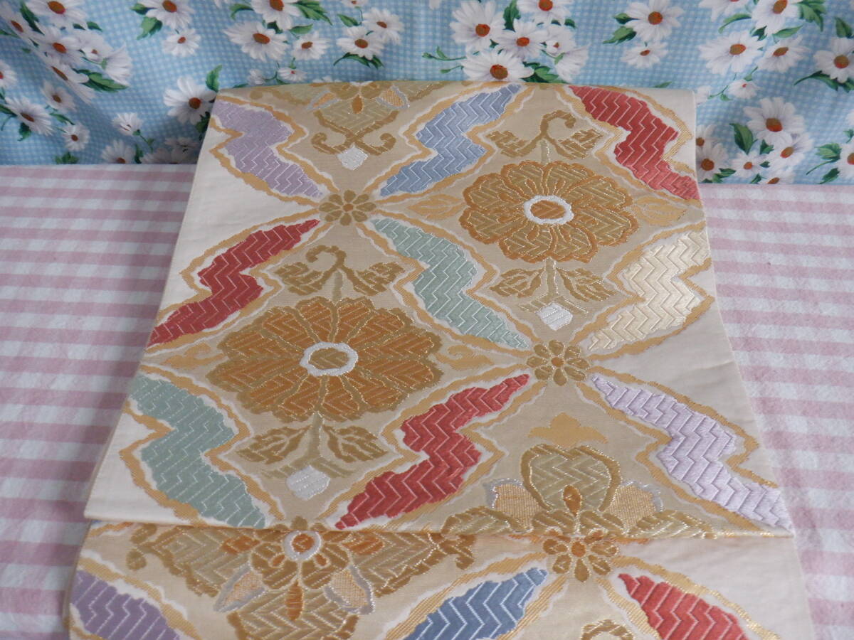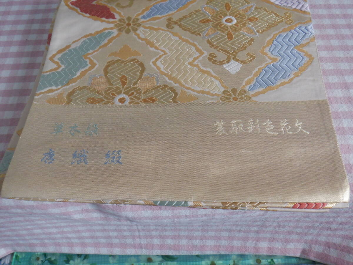 『草木染 菱取彩色花文 唐織綴 西陣織 袋帯 正絹~鮮やかな色合いに豪華な模様の袋帯 未仕立て品 長期保管品』になります。写真に写っているものがすべてになります、着物について全くわかりません。実家の片付けで出てきましたので、詳しいことはわかりかねますのでご理解いただける方のみ入札をお願いいたします。発送の方ですが、折り曲げて発送させていただきますのでご理解いただける方のみ入札をお願いいたします。自宅にて長期保管品につき現状渡しとなりますので、ノークレームノーリターンでお願いいたします。 神経質な方は、入札をご遠慮ください。新規の方・評価の悪い方は入札は、こちらの判断で取り消す場合がありますのでご了承ください。