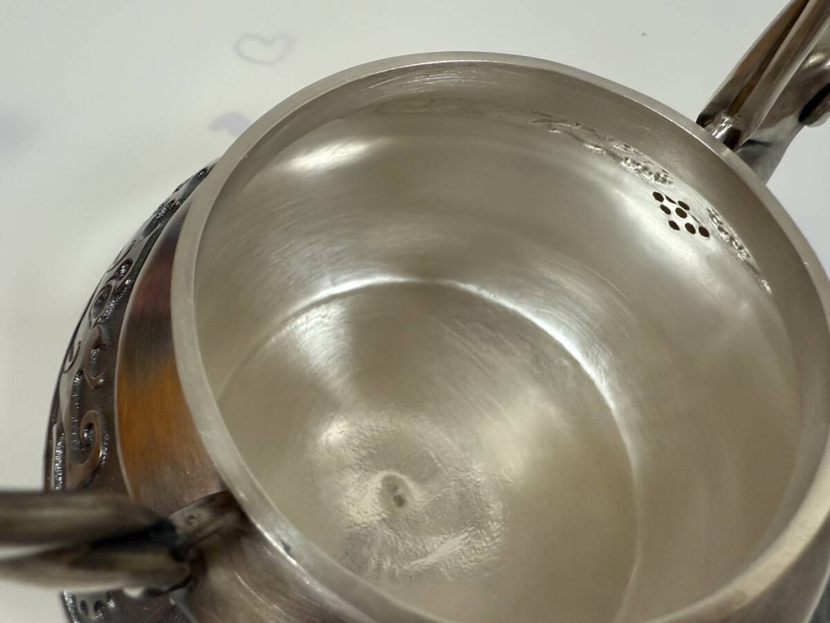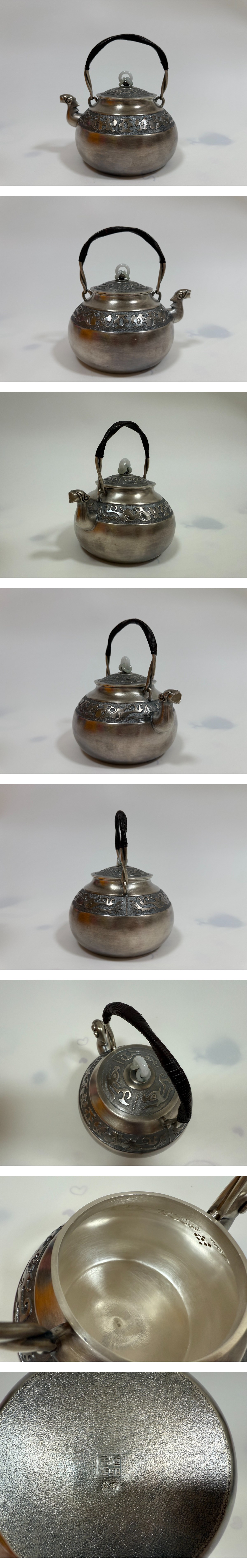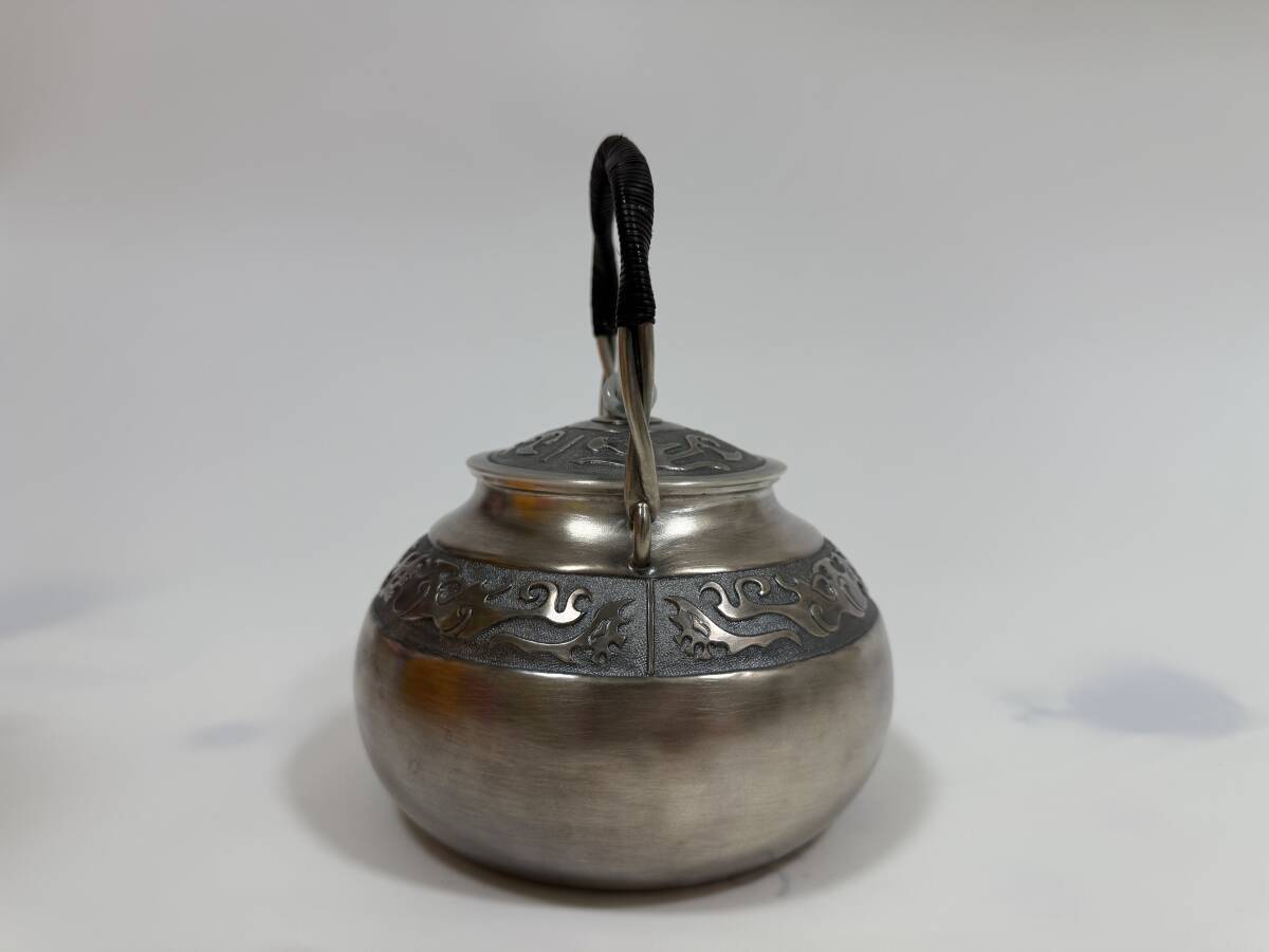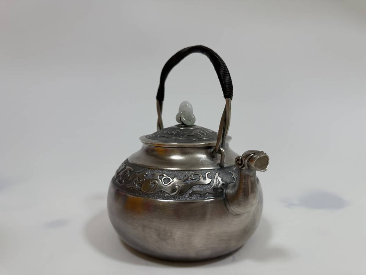 時代 純銀製 蔵六居造 饕餮紋 玉摘 獣口湯沸 工芸品 古美術品 銀瓶 煎茶道具