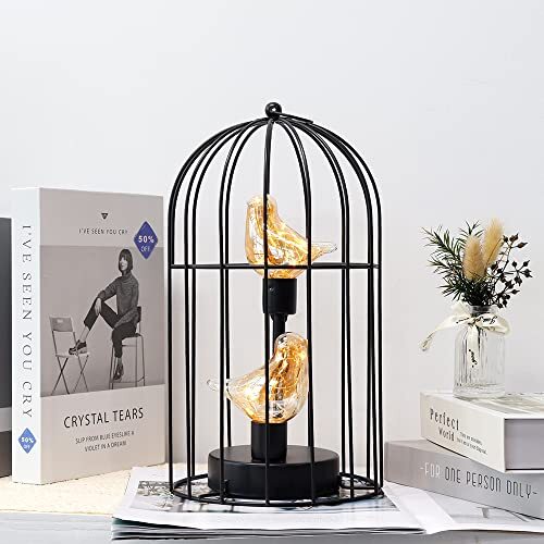 商品名 | JHY DESIGN 電池式テーブルランプ 高さ30cm 置き型 かわいい鳥かごデザイン LEDフェアリーライト付き おしゃれ 間接照明ライト 装飾ランプ | ||