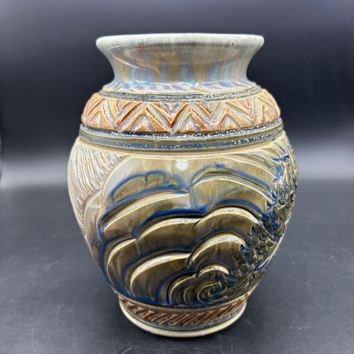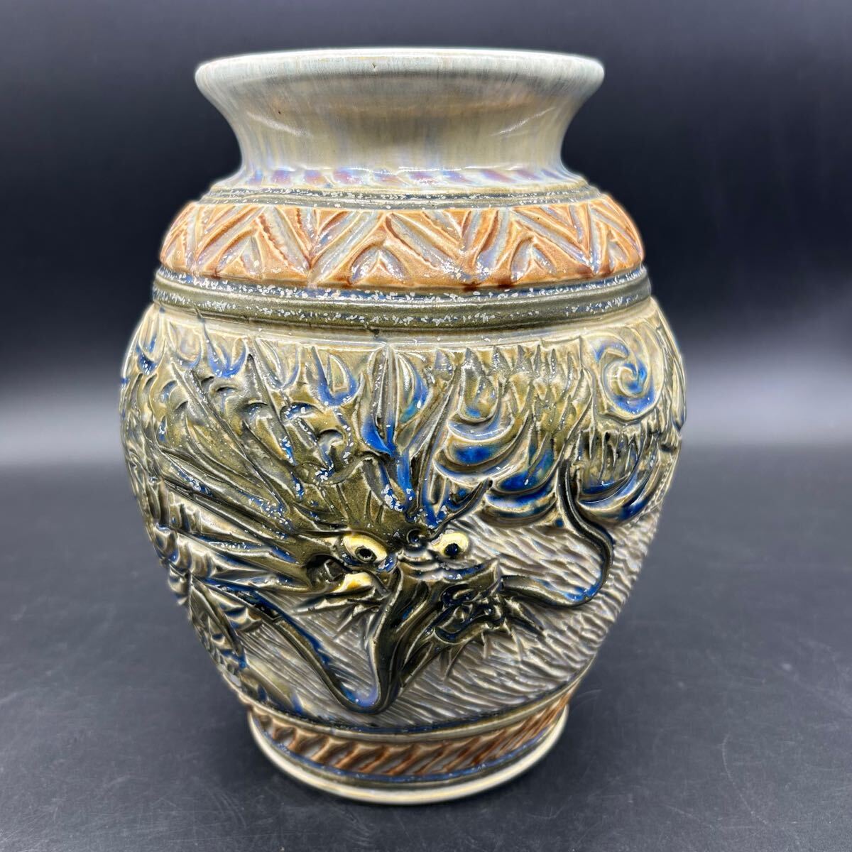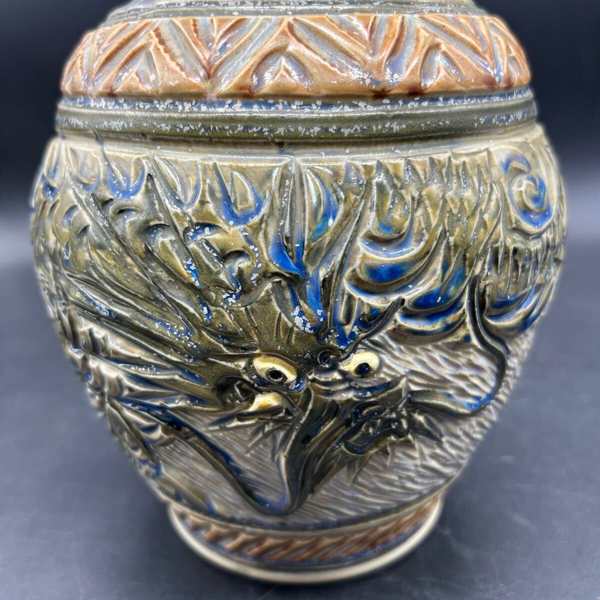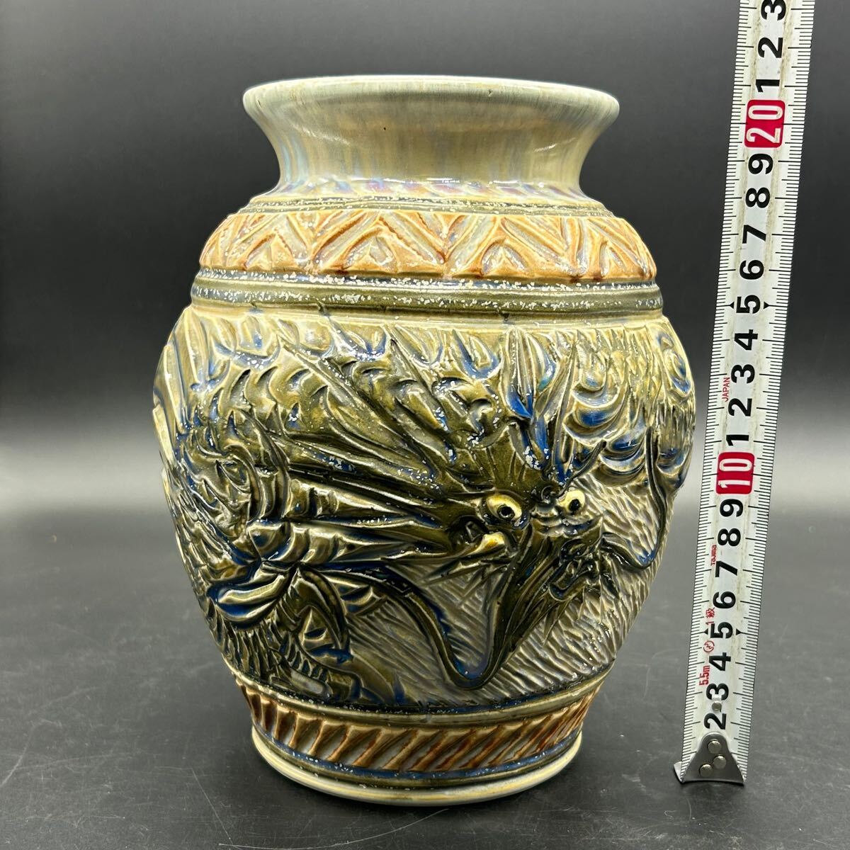 花器 花瓶 直山? 辰 龍紋 手彫り 壺 インテリア 陶器 ヒ3-1