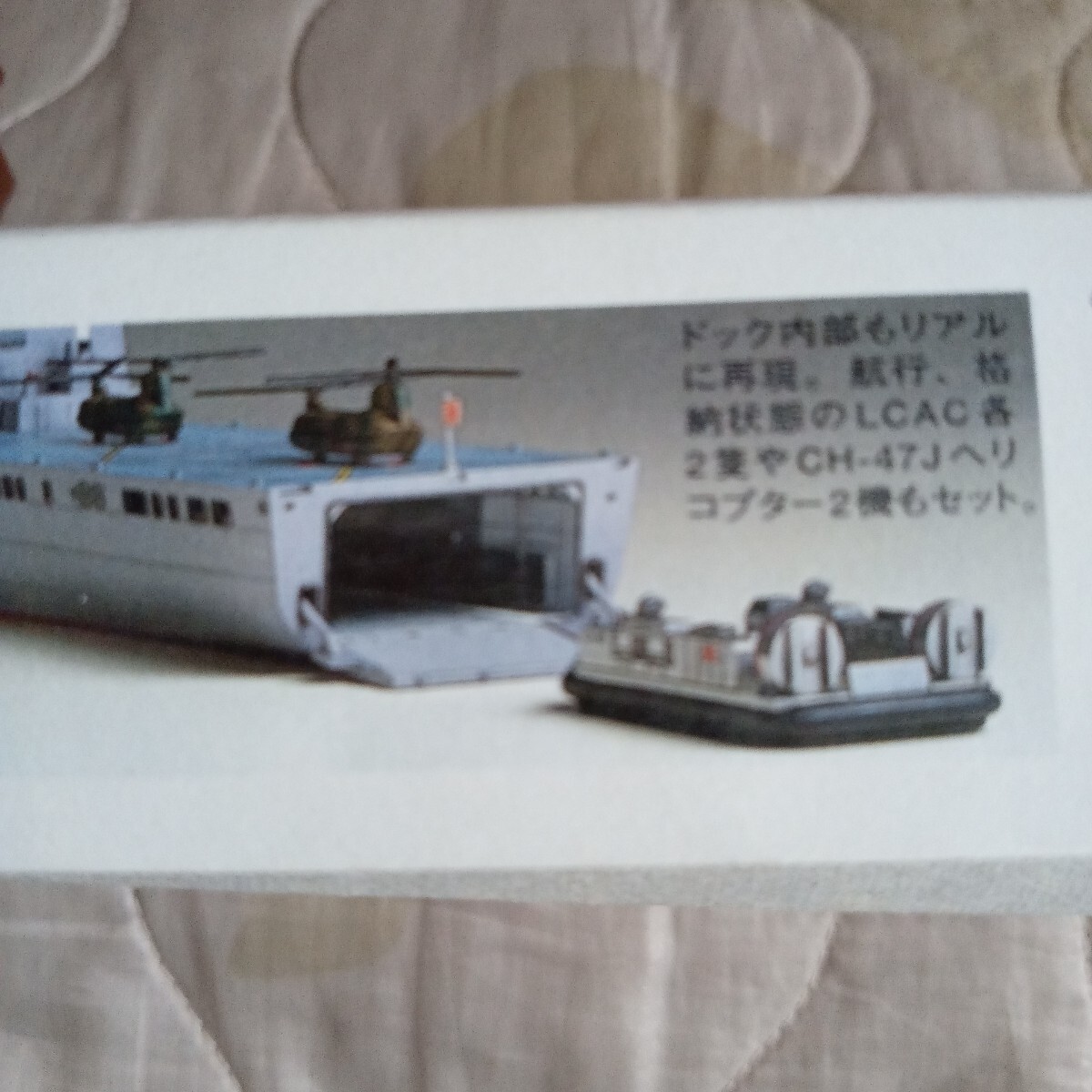 ドック内部もリアルに再現。航行、格納状態のLCAC各2隻やCH47ヘリコプター2機もセット。