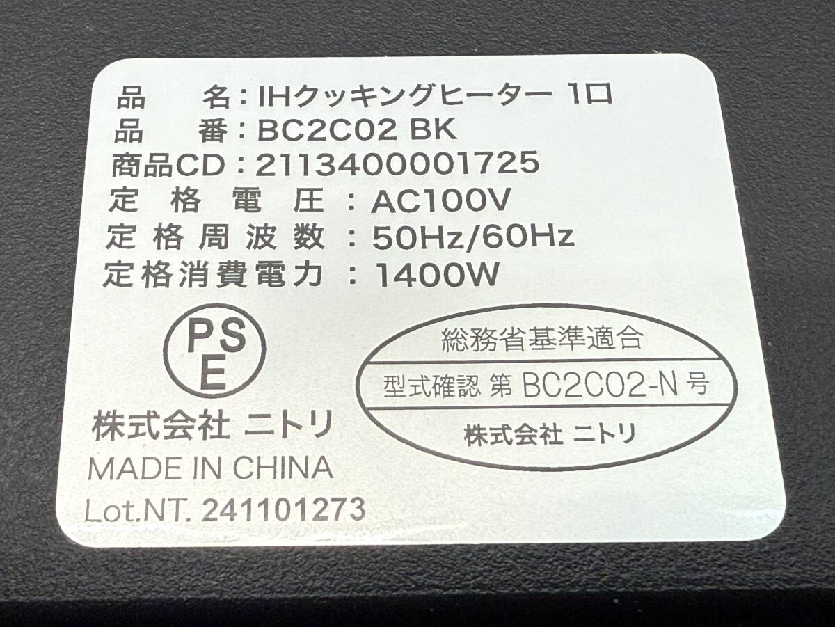 ●メーカー:ニトリ/NITORI ●型番:BC2C02BK ●外形寸法:幅290x奥行350x高さ480mm ●質量:2.5kg(マグネット式電気コード含む) ●保温機能3段階40・60・80℃ ●揚げ物温度6段階調節:150~200℃ ●年式:2025年製 ●動作確認のチェック済みです。 ●使用回数1回の美品IHクッキングヒーターになっております。 |