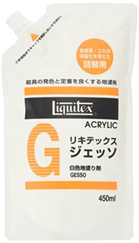 ・ホワイト 450ml ・・Size:450ml炭酸カルシウムとチタニウムホワイトの顔料からできた純白の地塗り剤です。絵具の発色と定着を助けます。乳状で、浸透が良くわずか1~2時間で乾燥しますが、制作の前日に塗っておくのが理想的です。木、ネンド、皮、漆喰、ブロックなど、あらゆるものにお使いいただけます。また、リキテックスカラーだけでなく、油絵具、水彩絵具、テンペラにも有効。カラーファンデーションを作るときにはカラージェッソと混色することで明度を自由にコントロールすることができます。