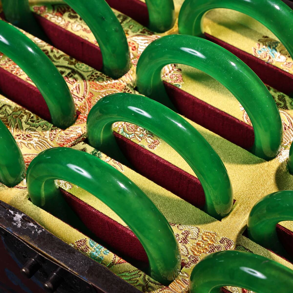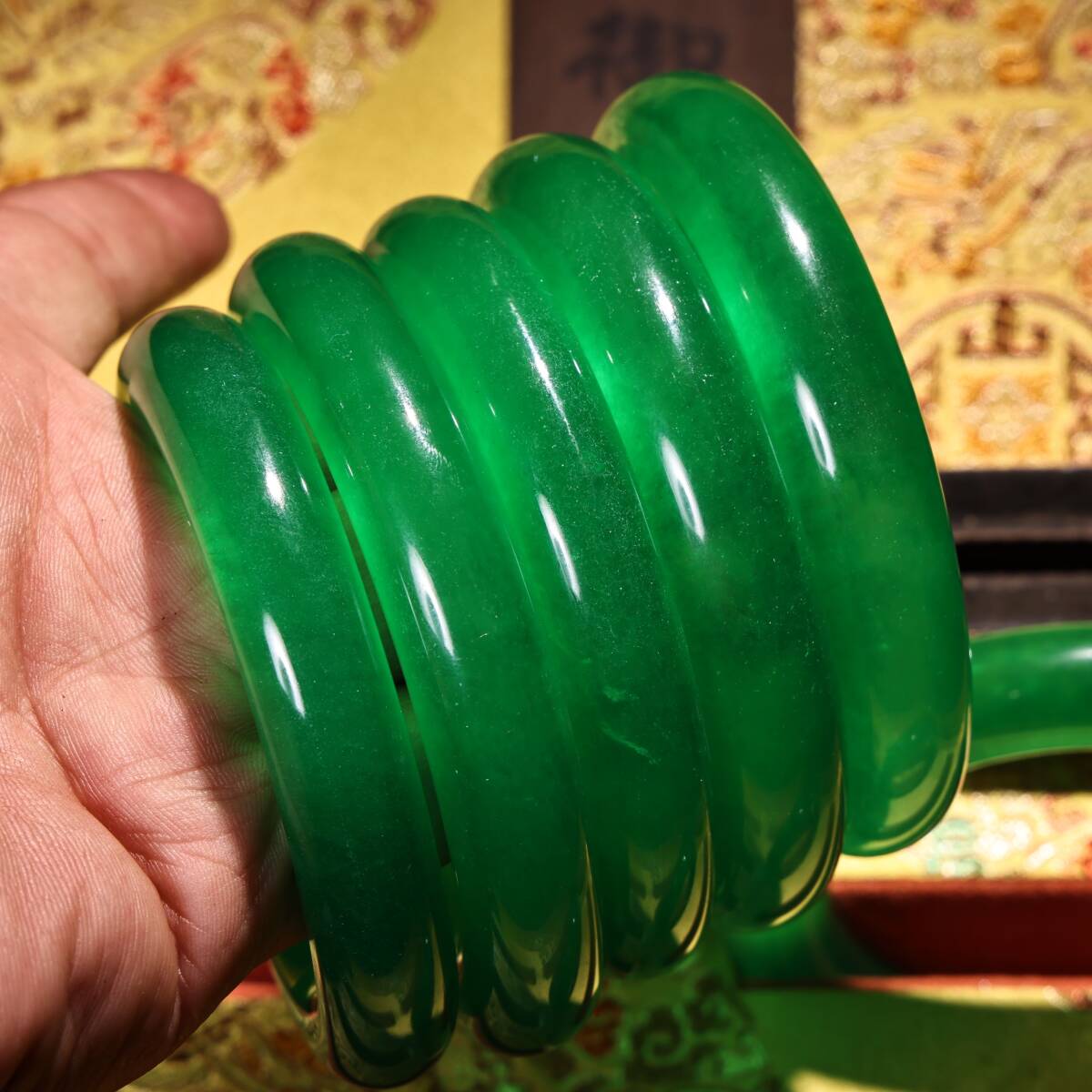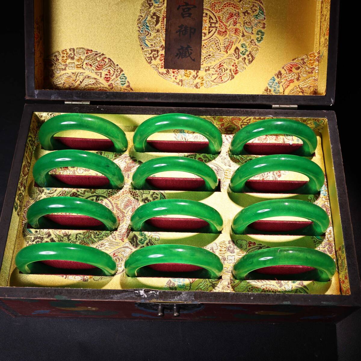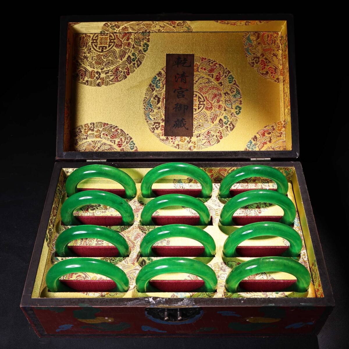 「清時代 宮廷御藏 高氷 翡翠彫 帝王緑 腕輪 手飾 12支」時代物 古董品 骨董 旧家蔵出し 唐物 中国古玩 古美術品