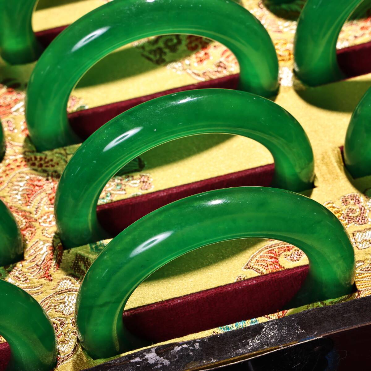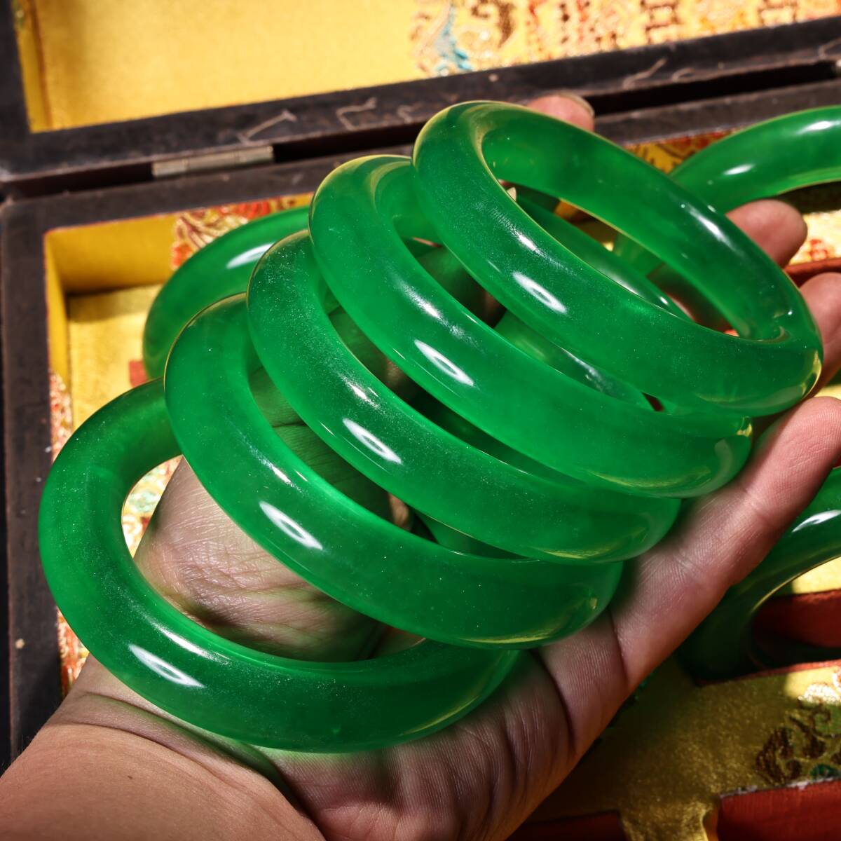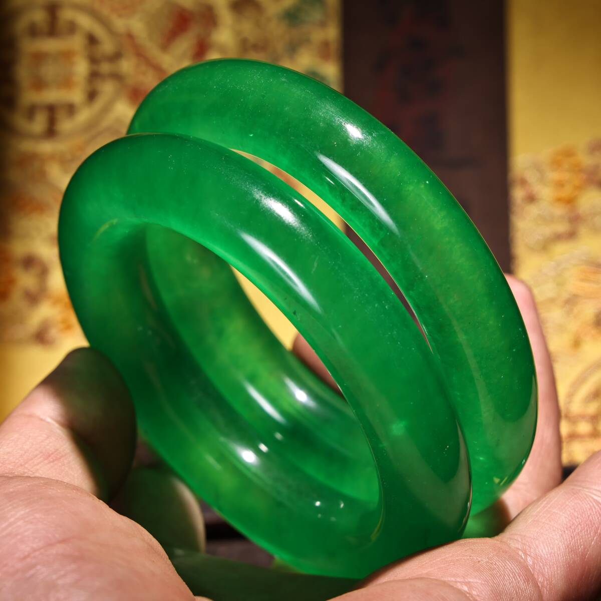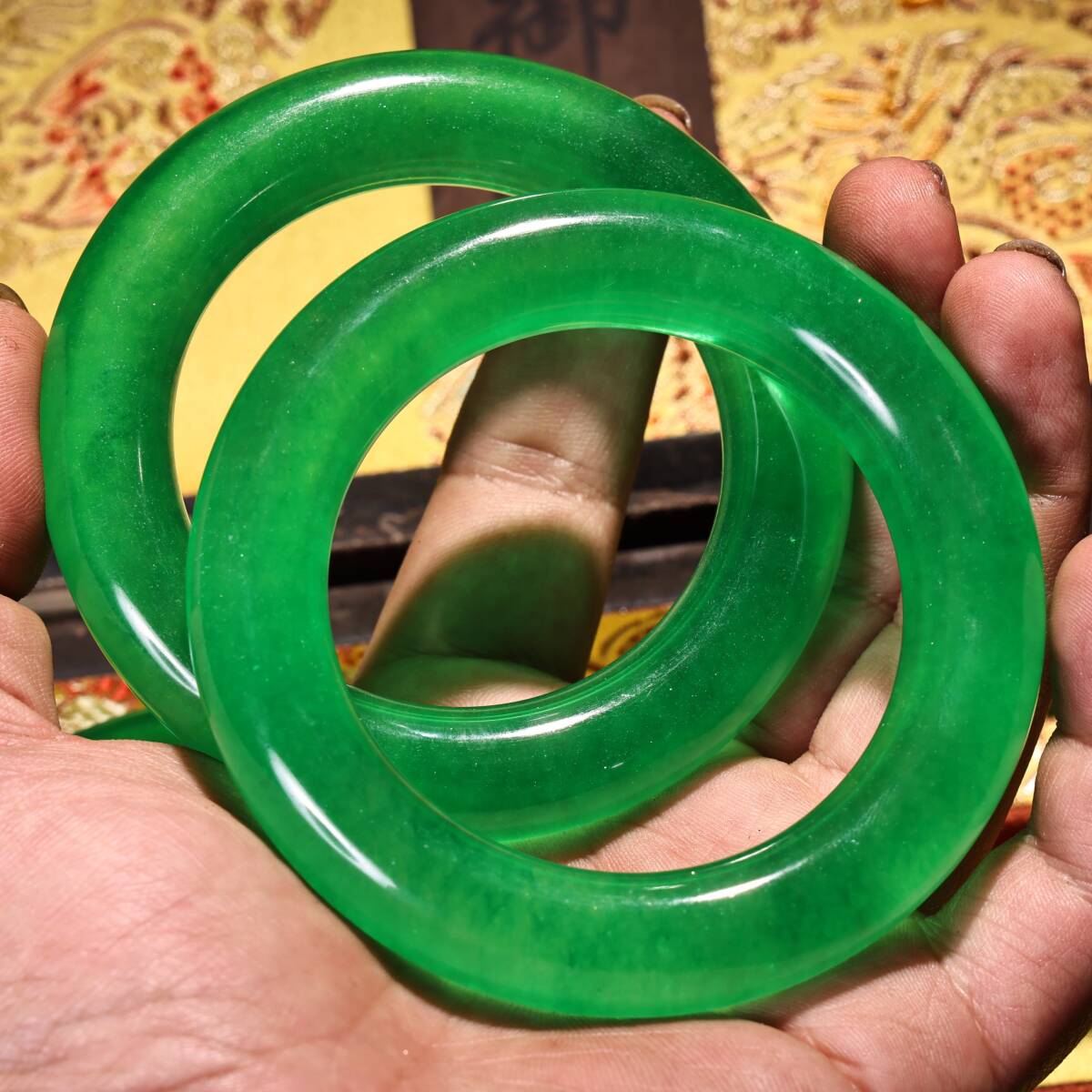 「清時代 宮廷御藏 高氷 翡翠彫 帝王緑 腕輪 手飾 12支」時代物 古董品 骨董 旧家蔵出し 唐物 中国古玩 古美術品