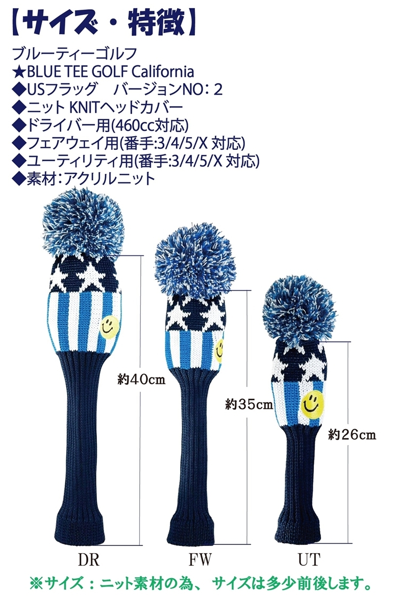 ☆UT:BL 2本セットブルーティーゴルフ【ブルー: USA FLAG Ver2: SM】ユーティリティ用ニットヘッドカバー HC-USA2 送料無料