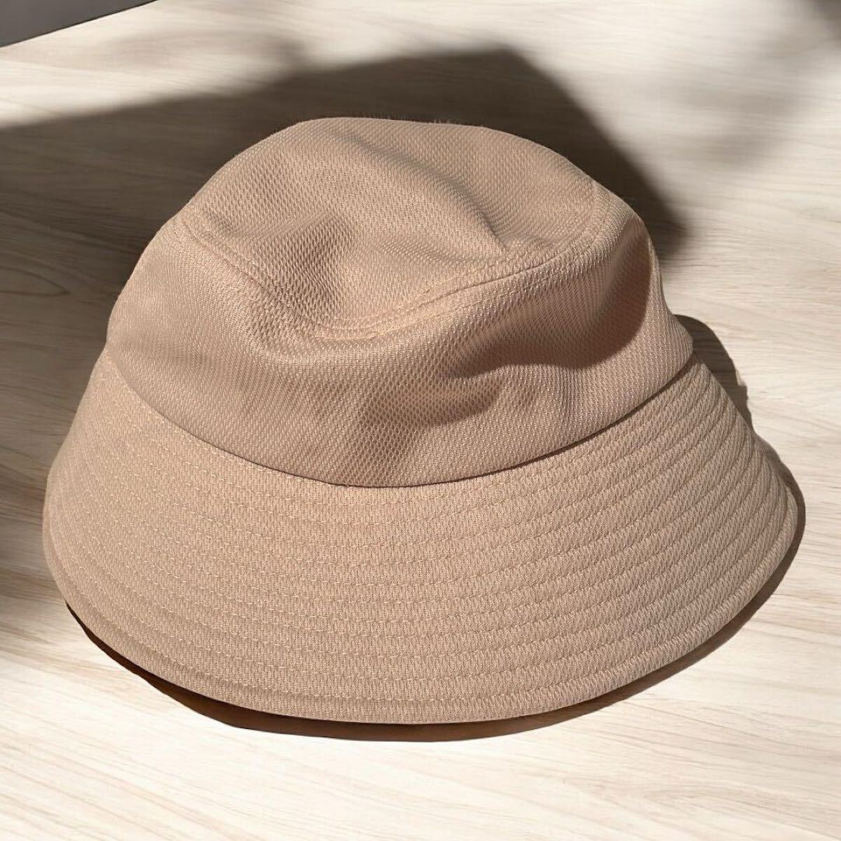 ベージュの58cmバケットハット、内側は布地で快適なフィット感。
