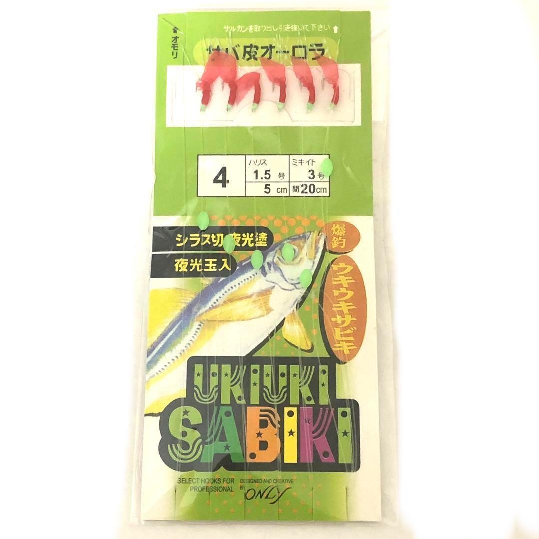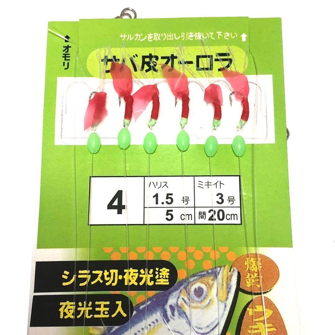 サバ皮オーロラサビキ赤スキン 4号 夜光玉入