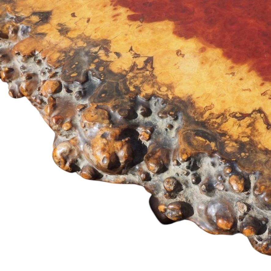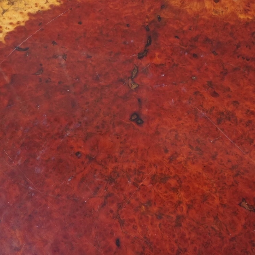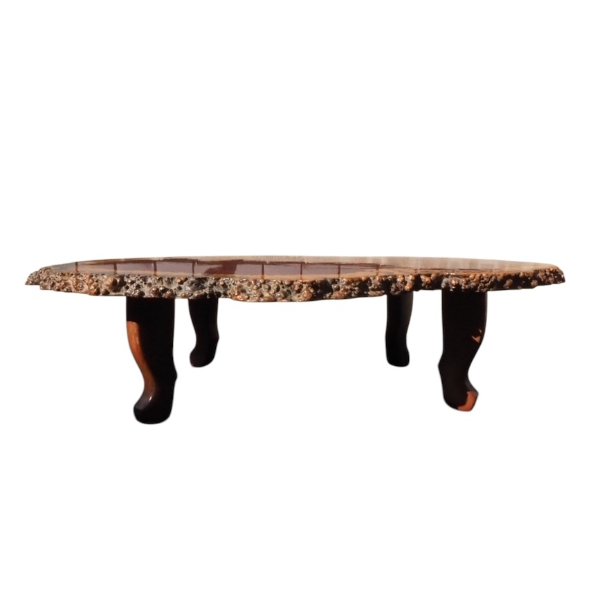 天然花梨瘤材の一枚板を使用した、迫力のある座卓。