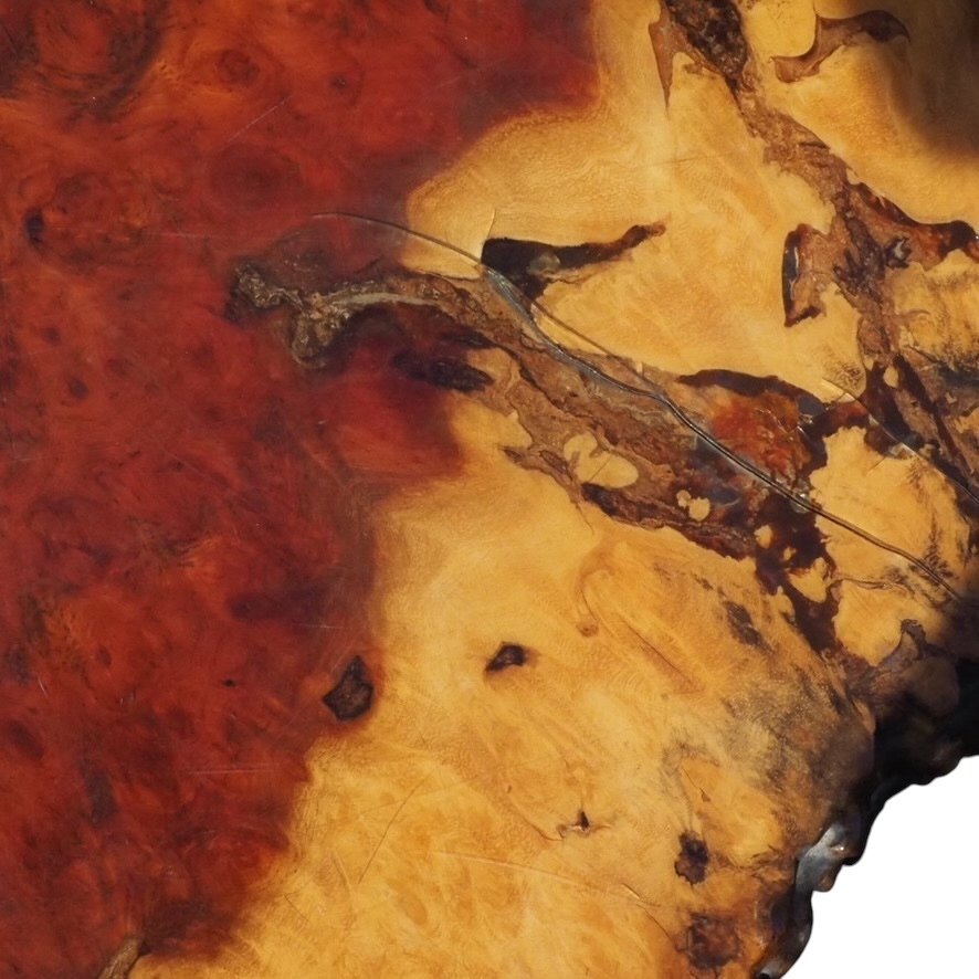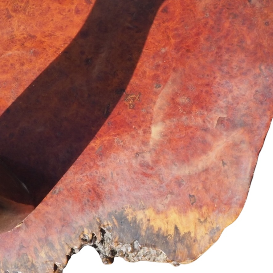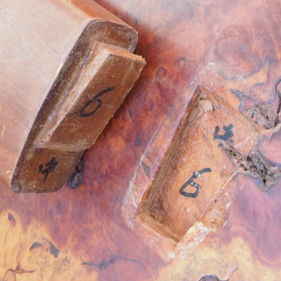 赤褐色の艶やかな木肌と複雑な木目模様が、自然の造形美をそのまま伝えます。