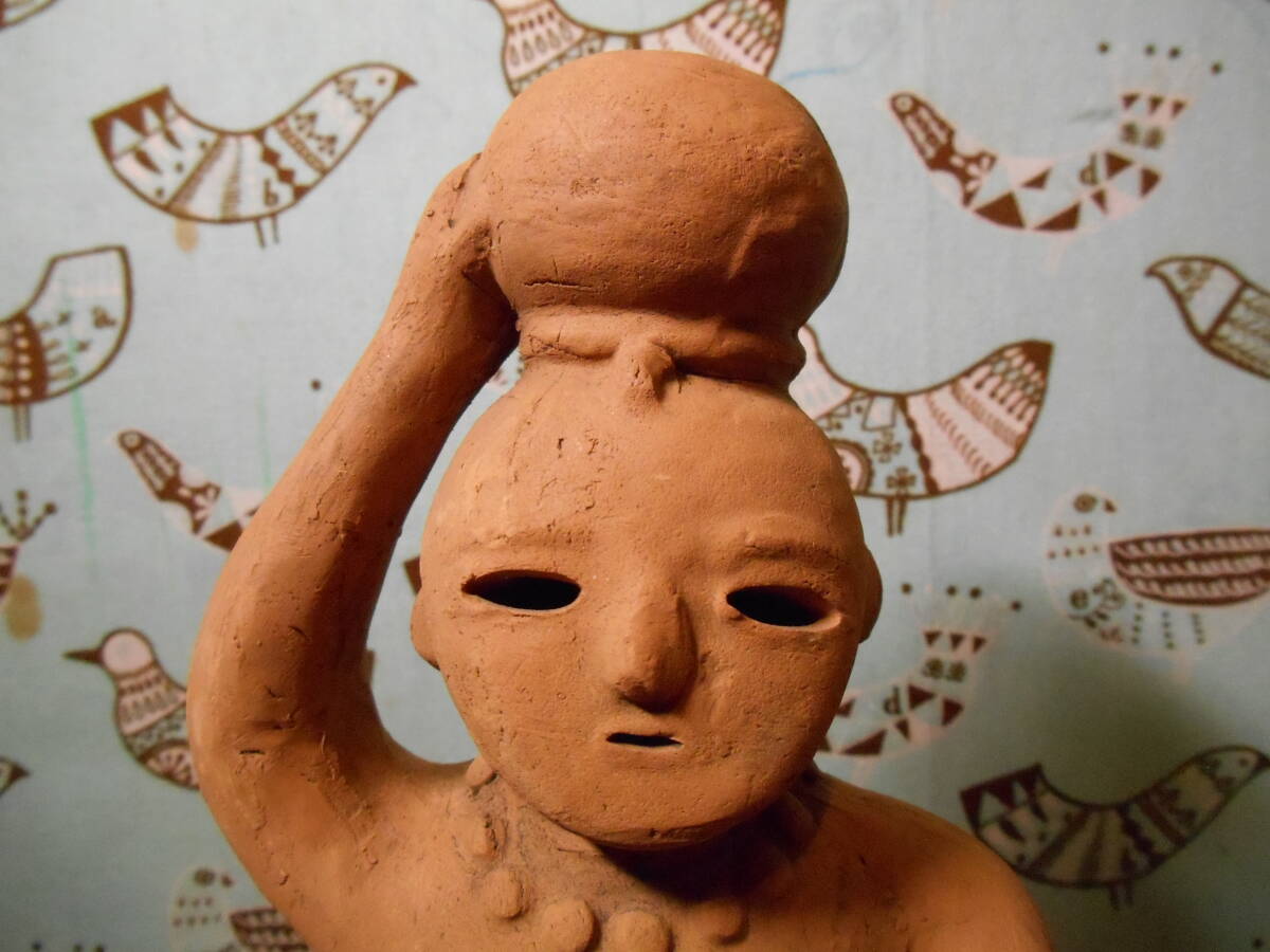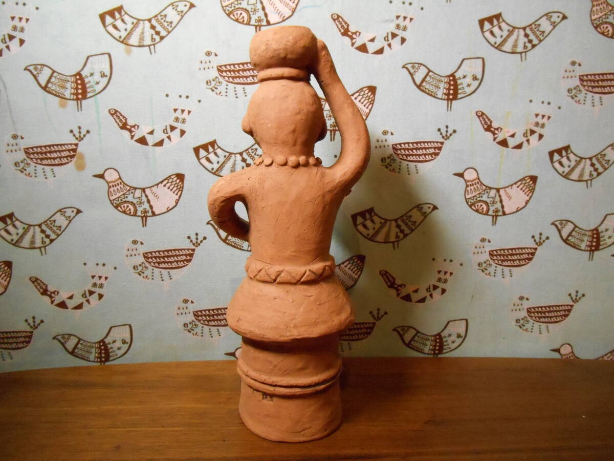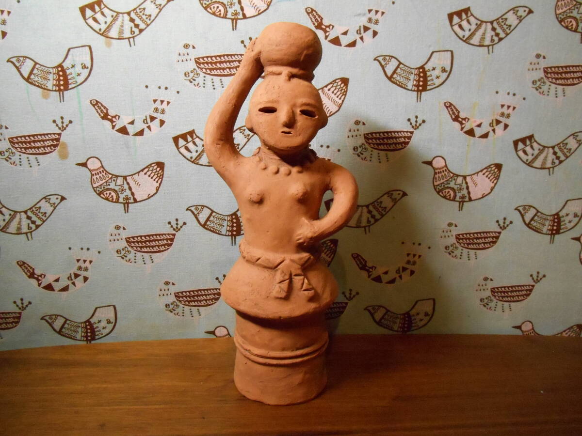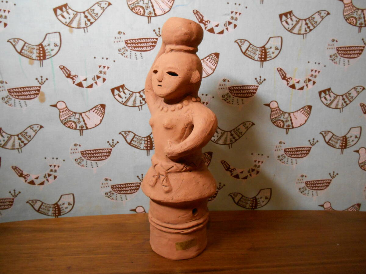 宮崎県 本部はにわ製作所 はにわ 置物 土人形 水くむ女 高さ約26cm / 重さ約883g 中古