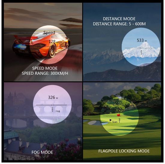 多機能: 距離、スピード、フォグ、旗竿ロック-さまざまな動作モードを備えた優れた測定装置で、ゴルフ、狩猟、測量、スポーツイベント、アウトドアアドベンチャーで素晴らしい体験を提供します。