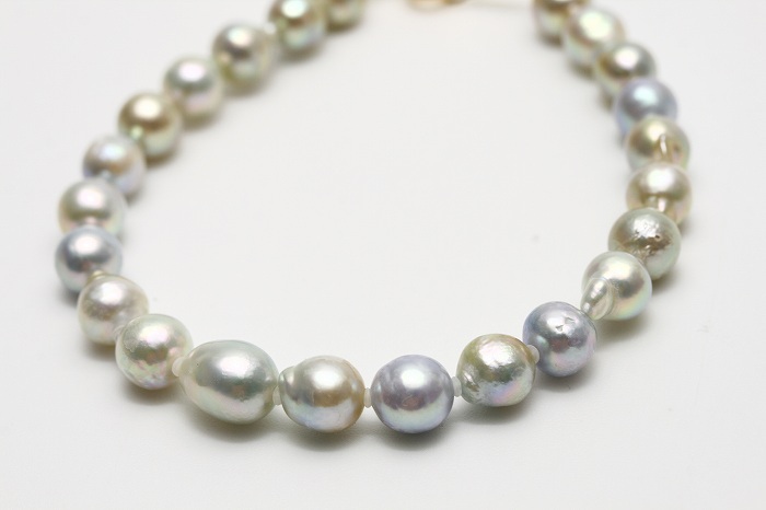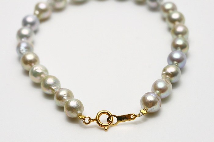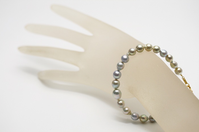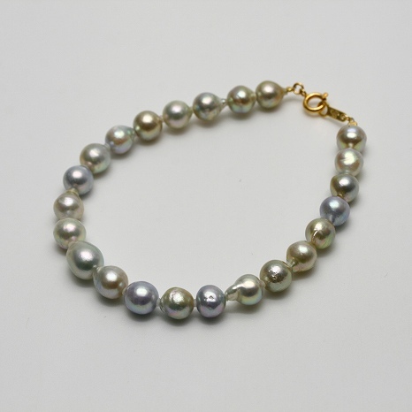 真珠のみで仕上げたパールブレスレットです。 手元に女性らしさが光る一品です。 今回,清涼感溢れるグレー系マルチカラーのアコヤ真珠を使用しました。 真珠のブレスレットは時計と重ねづけしても素敵です。 手元にオシャレな輝きをプラスいたします。 | |