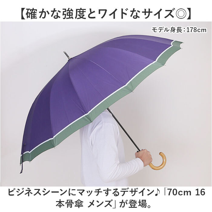 商品説明 | ・・【確かな強度とワイドなサイズ◎】 ・ビジネスシーンにマッチするデザイン♪「70cm 16本骨傘 メンズ」が登場。 ・【強い雨風に耐える、16本骨】 ・一般的な傘の2倍の骨数を使った、頑丈な作り!ひらいた時のシルエットもモダンで美しい♪ ・【丈夫なグラスファイバー製】 ・しなやかで折れにくくサビにくい!親骨や受骨には軽量のグラスファイバー骨を採用。 ・【ワンタッチでオープン!】 ・車の乗り降りや、荷物で手がふさがっているときも、スムーズに開閉できるジャンプ傘。 ・【男性の身体をガードする70cm】 ・肩やバッグもすっぽりガードする、大きめサイズが嬉しいポイント。お子様の送迎用にも◎ ・【まとめやすいボタン式バンド】 ・傘生地を留めるバンドは、パチンっと留めやすいスナップボタン式で扱いやすい。 ・【オンもオフも使えるデザイン】 ・どんなスタイルにもマッチするシックなデザイン。お好みをチョイスして☆ |