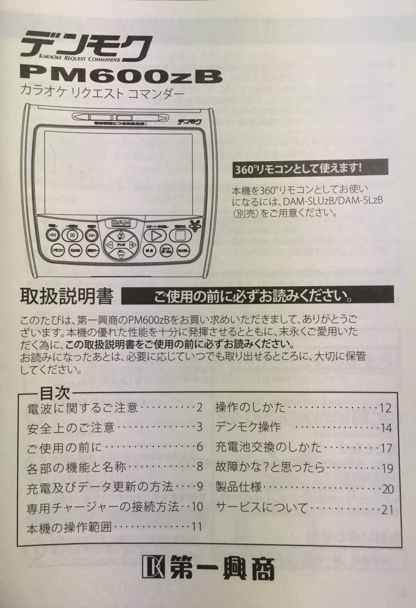 | 即決♪DAM♪デンモクPM600ZB♪取説♪ | |