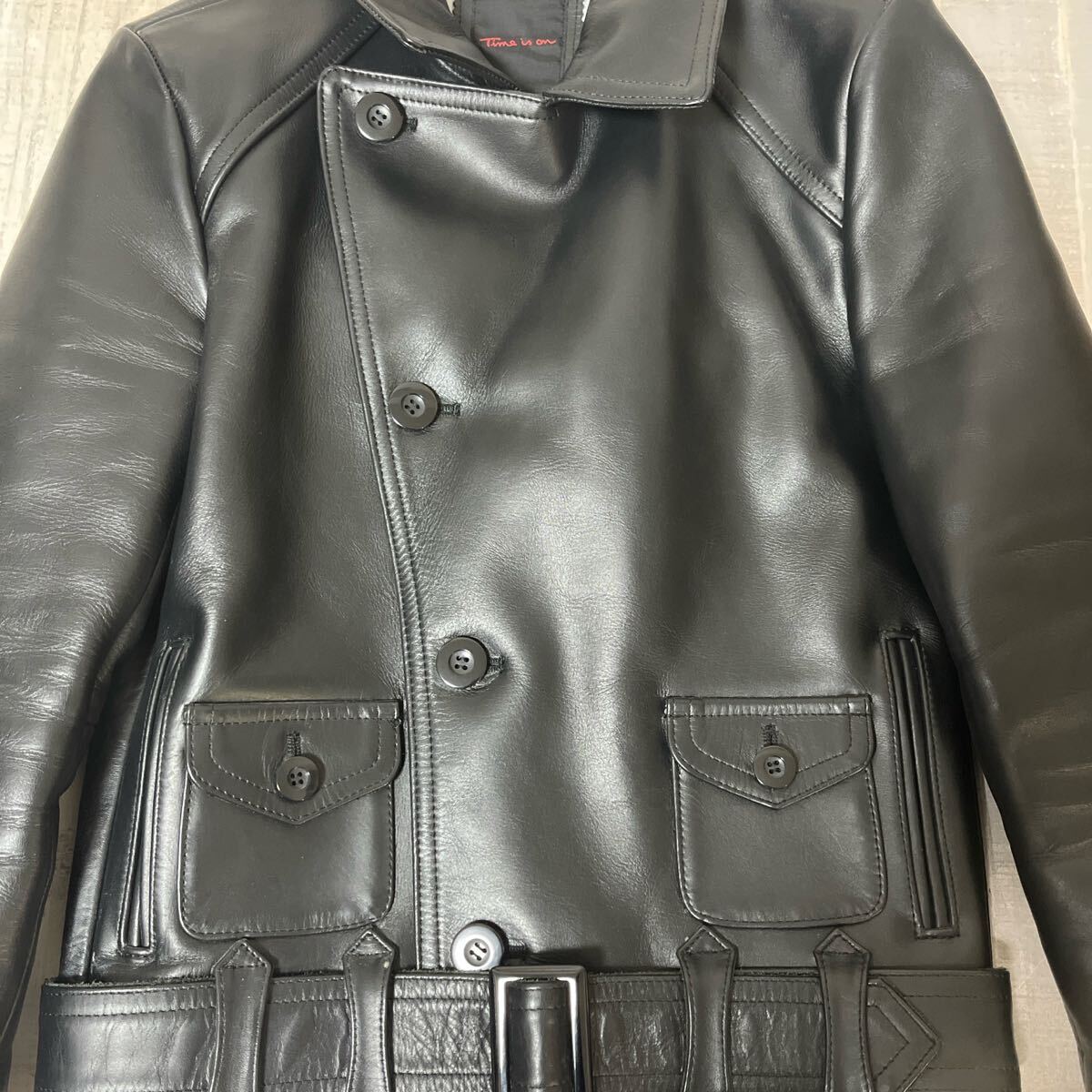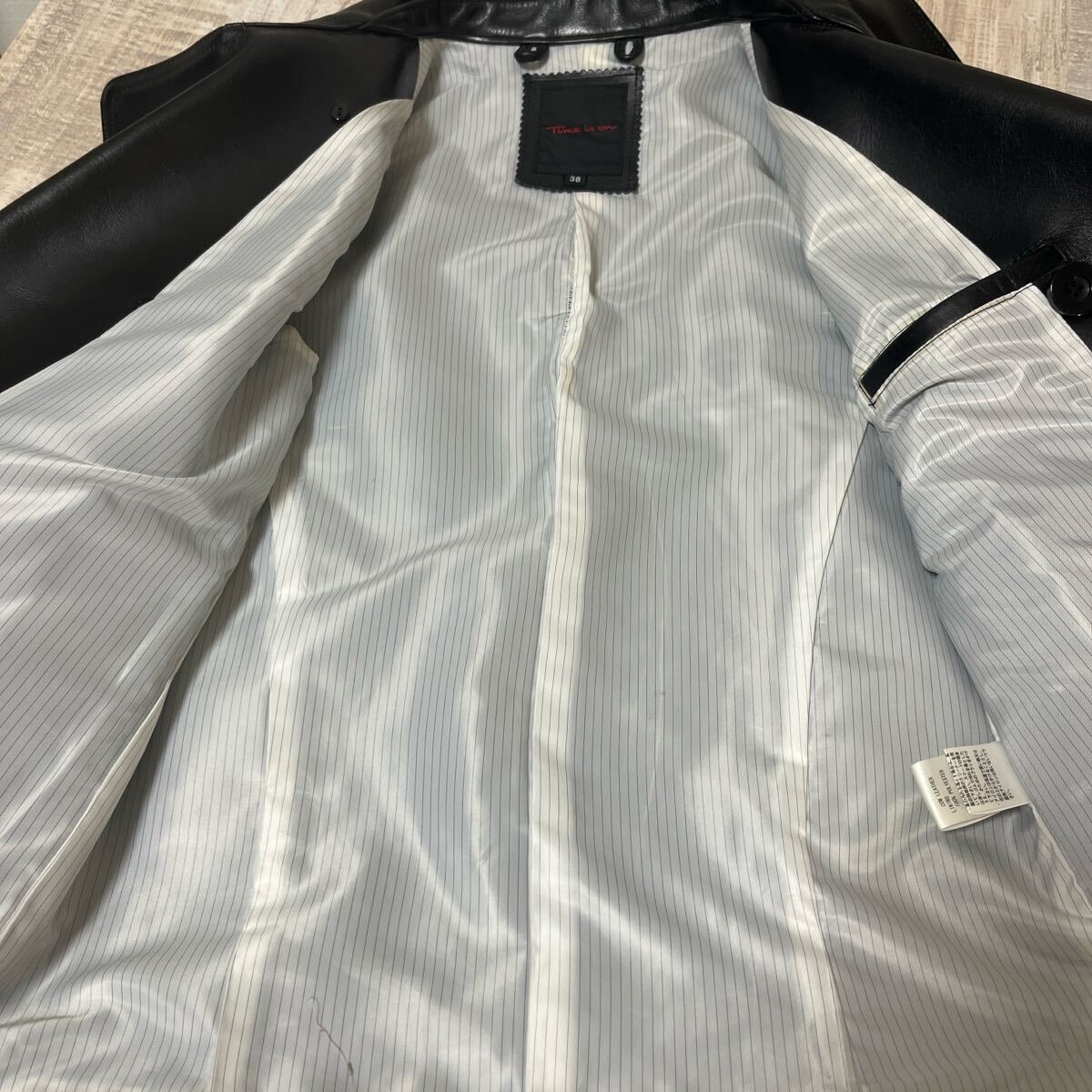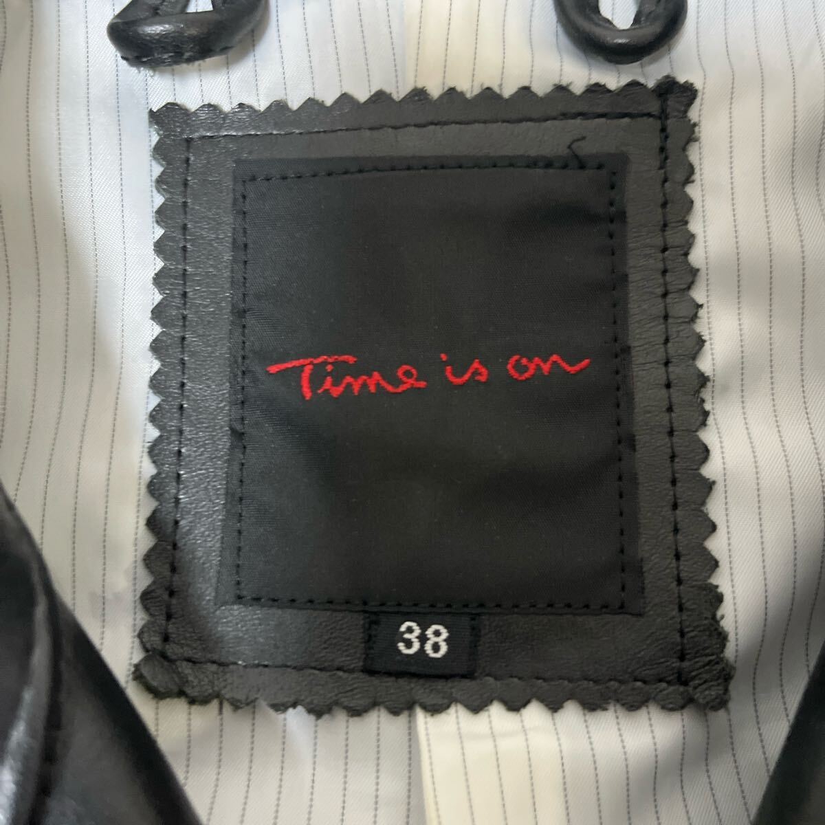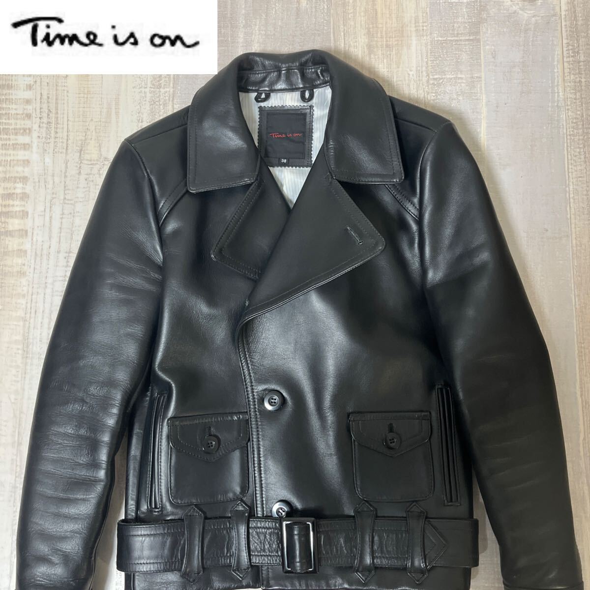 【極美品 柔らか上質牛革】Time is on カウハイド カウレザー 2way ダブル ライダース ジャケット ブルゾン タイムイズオン ブラック 黒 サイズ38 M-L相当 メンズ ヴィンテージ COW LEATHER JACKET
