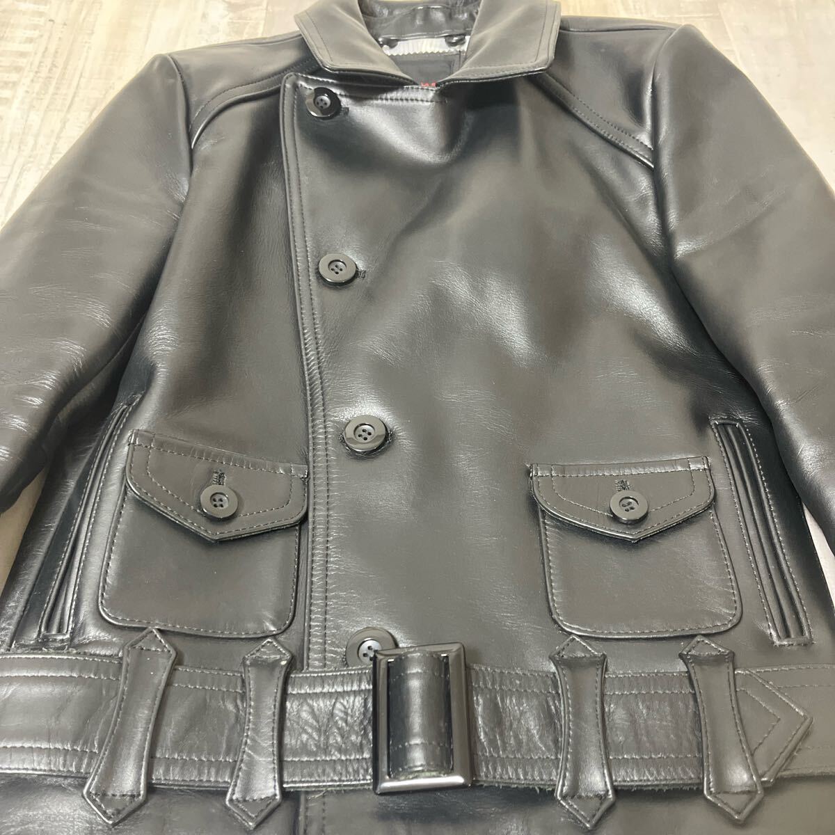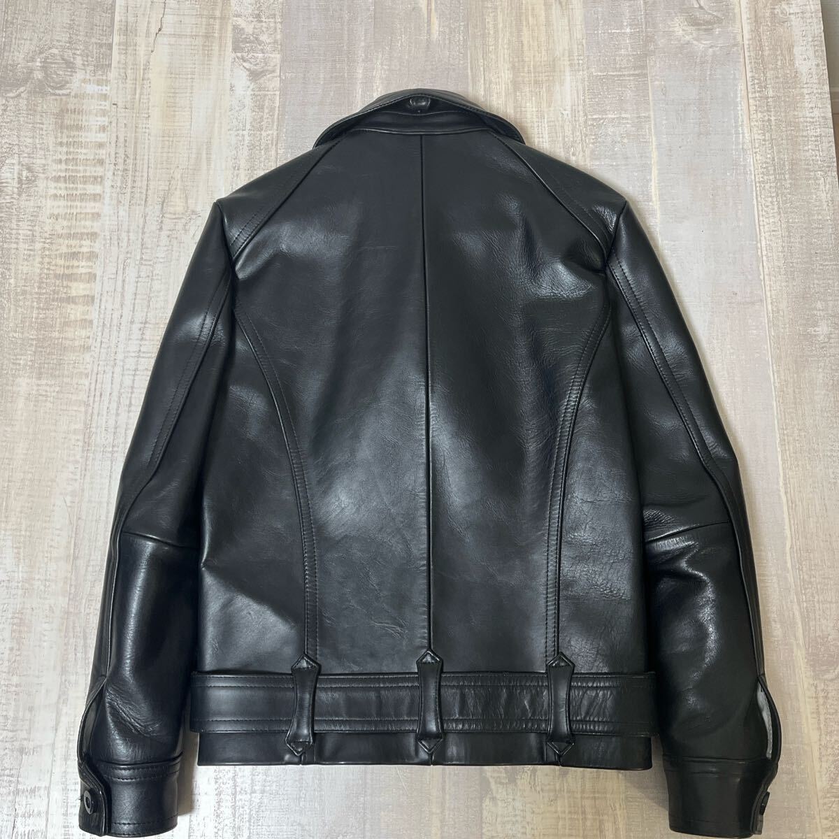 仕上げは完全に素上げし、表面の仕上げはフェルトバフする事でスムースで自然な艶が出ていて、オイル感が残ってるので多少傷がついても少し手で摩擦をすれば傷が目立たなくなる特徴があり、着れば着るほど身体にFitし、重みはあるが着やすく馴染みます。