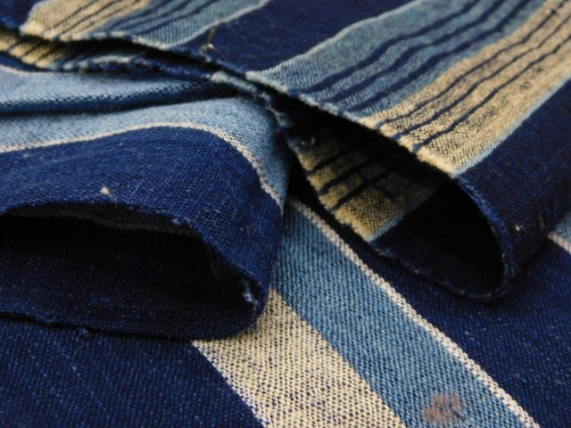 〔楽布〕P33293 昔の 縞木綿 絣 ハギレ 2枚 k