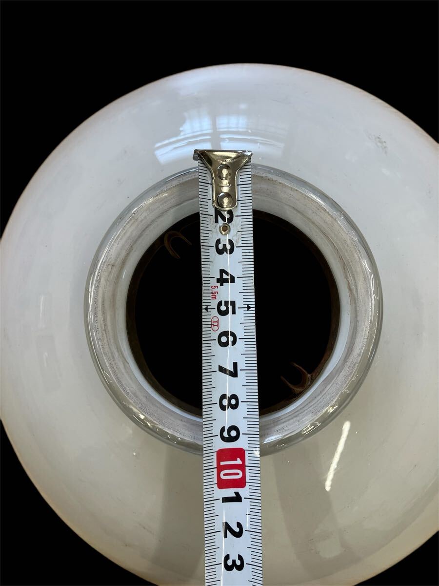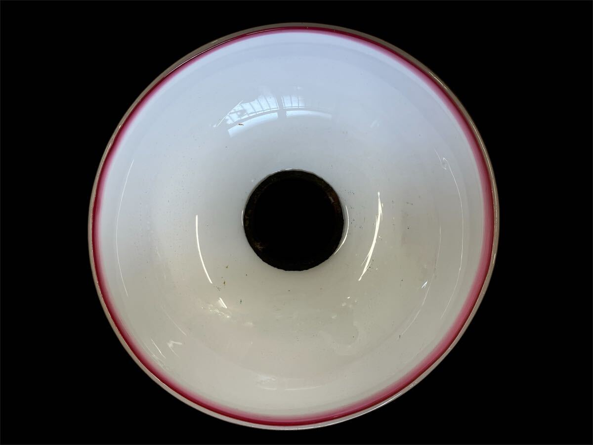アンティーク ランプシェード 乳白色 ガラス 白+赤ライン 昭和レトロ 電傘