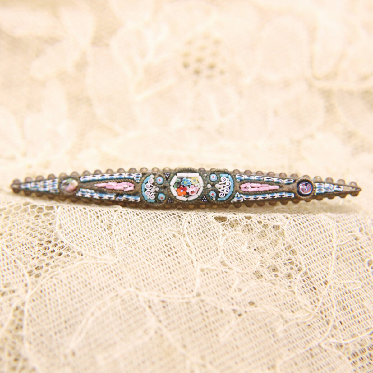アンティーク / マイクロモザイク / ブローチ / フラワー / 花柄 / イタリア / アクセサリー / ミクロ / モザイクガラス でございます。