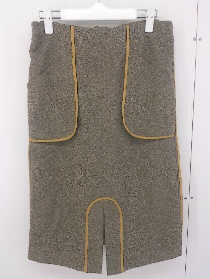 ◇ FRAPBOIS フラボア 総柄 センタースリット 膝下丈 タイト スカート サイズ1 ブラウン キャメル系 レディース