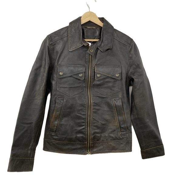 ドルチェアンドガッバーナ DOLCE&GABBANA ライダースジャケット サイズ44 S - ダークブラウン メンズ 長袖/レザー/秋/春 ジャケット