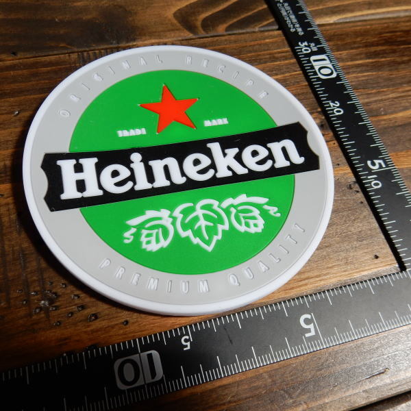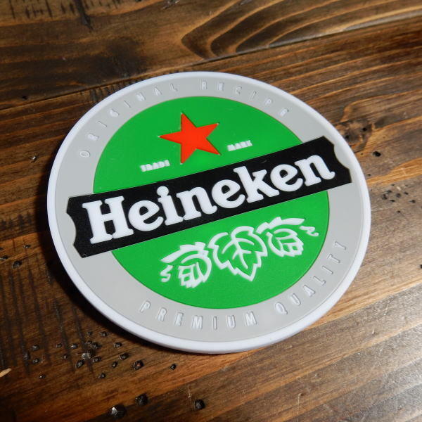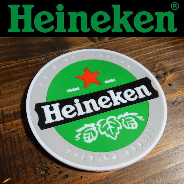 ハイネケンのラバーコースター!家で呑む時って、ついついティッシュペーパーをたたんでコースターにしちゃったりしますけど、やっぱりオシャレでちゃんとしたコースターを使った方が雰囲気が出ていいですよね。しかもそれが大好きなハイネケン柄なら、ビールの味も一段上がるってもんです。ラバー製ってところも良いポイント。紙と違って水気は吸いませんが、そのかわり洗って何度でも使えます。やっぱり毎日使うならコスパが重要ですよね。夏場に冷たいお酒を嗜む方、いかがですか。
