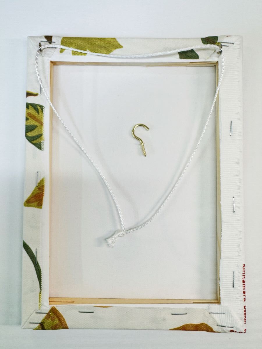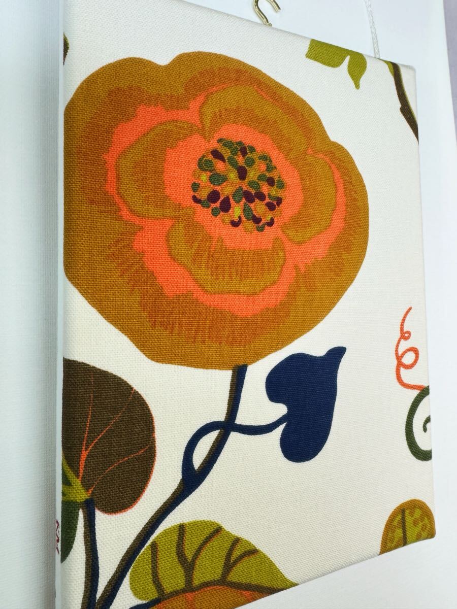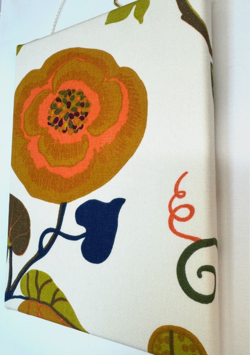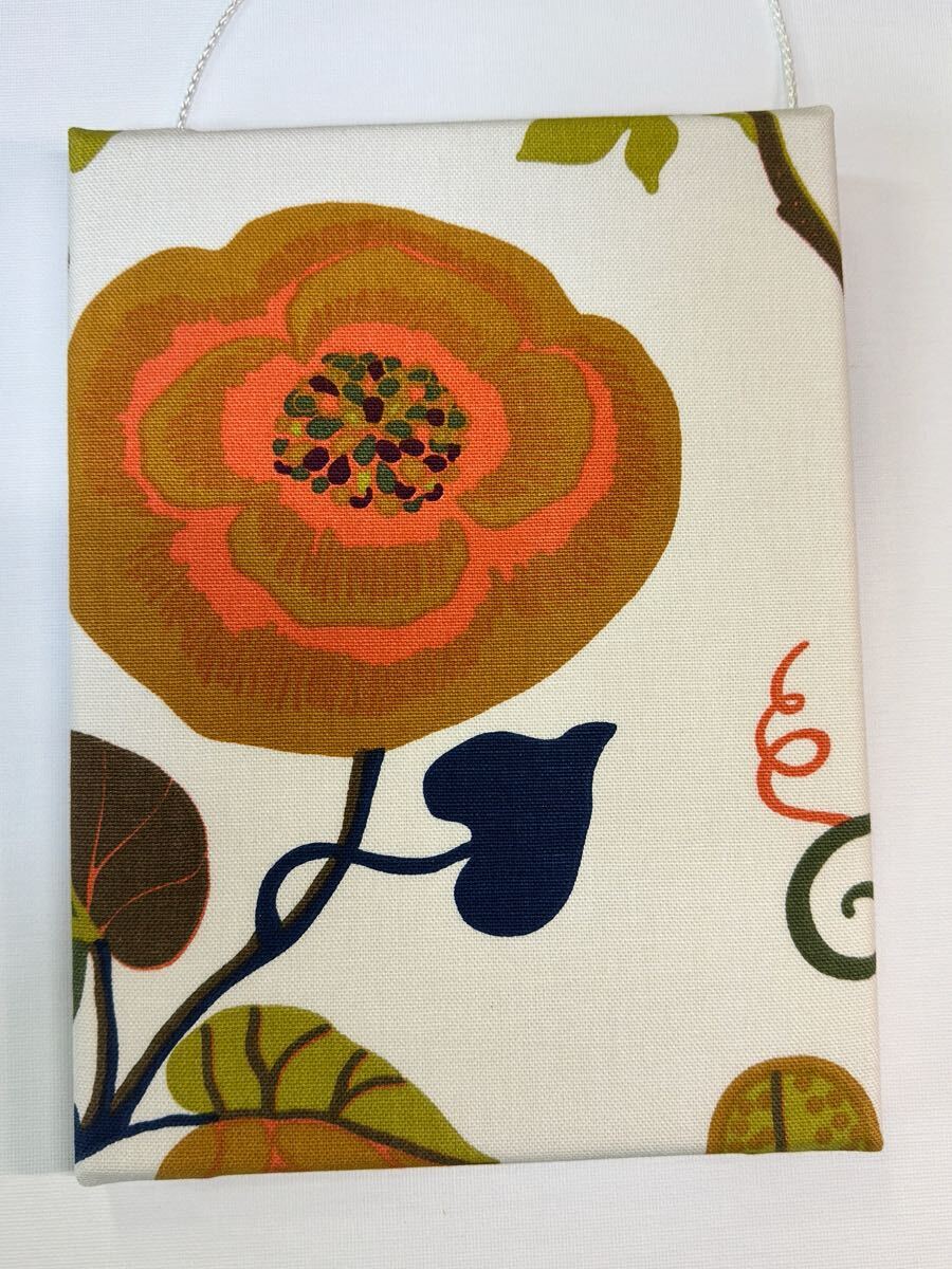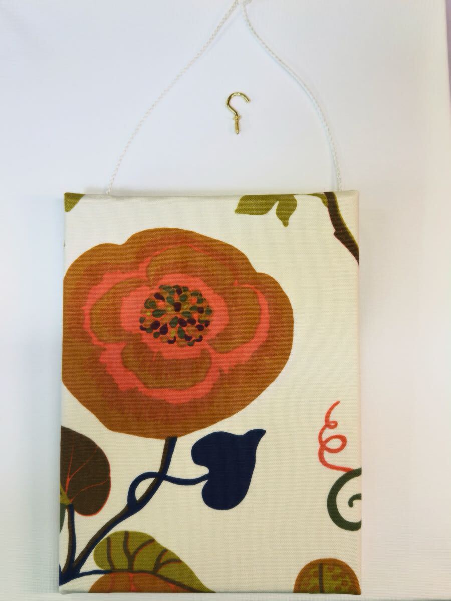 ・木製のパネルに布地を貼り付けたファブリックアートです。