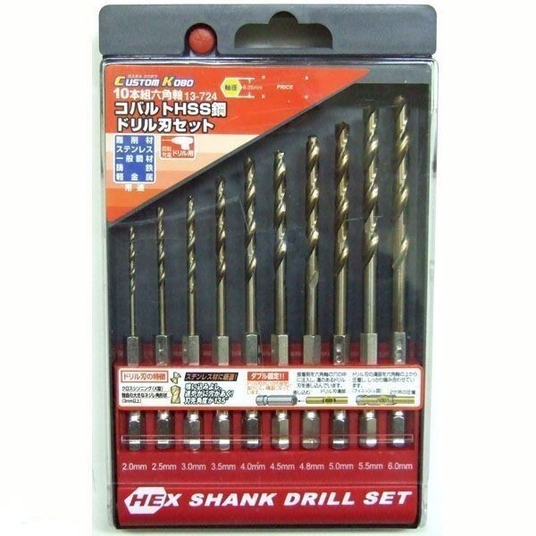CUSTOM KOBO 10本組六角軸コバルトHSS鋼ドリル刃セット