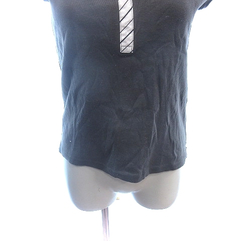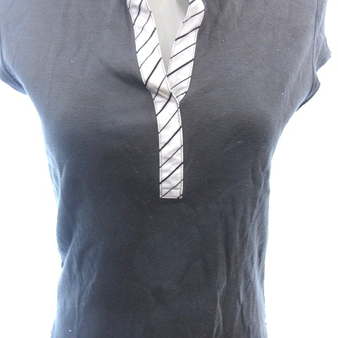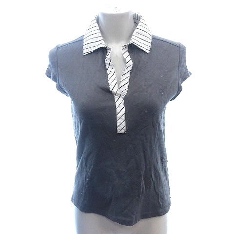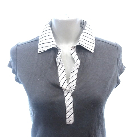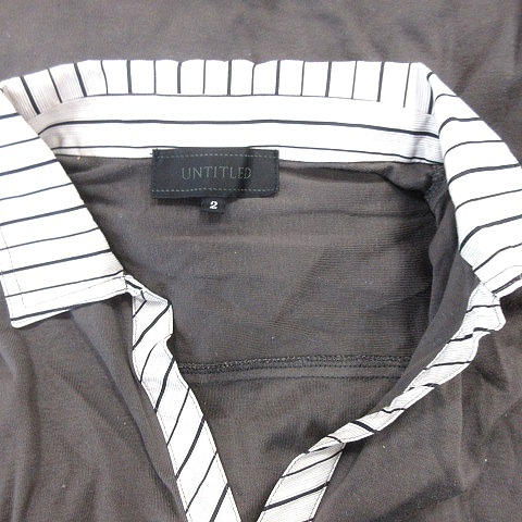 アンタイトル UNTITLED ポロシャツ カットソー スキッパーカラー ストライプ フレンチスリーブ 2 M チャコールグレー /AU レディース
