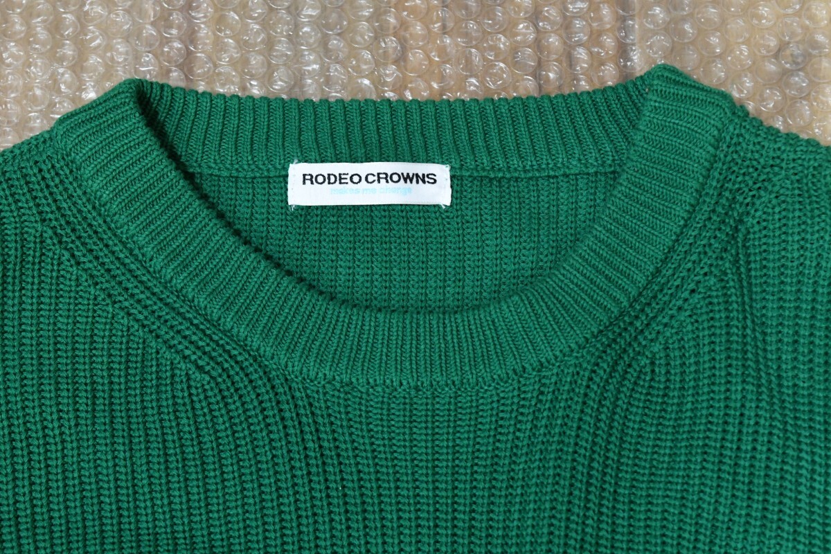 ロデオクラウンズ RODEO CROWNS ニット グリーン フリーサイズ コットン100% 長袖 トップス 緑 古着 の出品です。