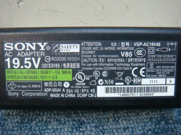 | ★商品説明★ | 仕様 ※管理番号:K5891 SONY AC ADAPTER 型号:VGP-AC19V48 入力:100-240V ~1.5A 50~60Hz 出力:19.5V~3.3A 動作確認:済み 数量:1個 電源ケーブル(汎用品)はついております。 商品につきましての詳しい情報はメーカーにてご確認くださいませ。 状態 中古品ですので使用感が御座います。 傷、汚れ、シール跡などが御座います。 適用機種はご確認くださいませ。 |