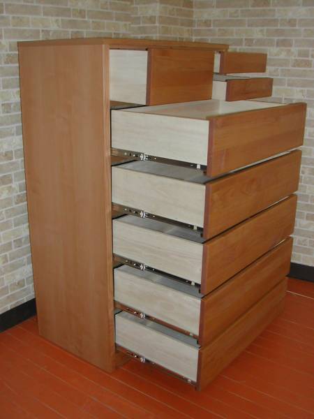 引き出しは箱組構造ですので、歪みがなく丈夫で、大引き出しは全てレール付きです。