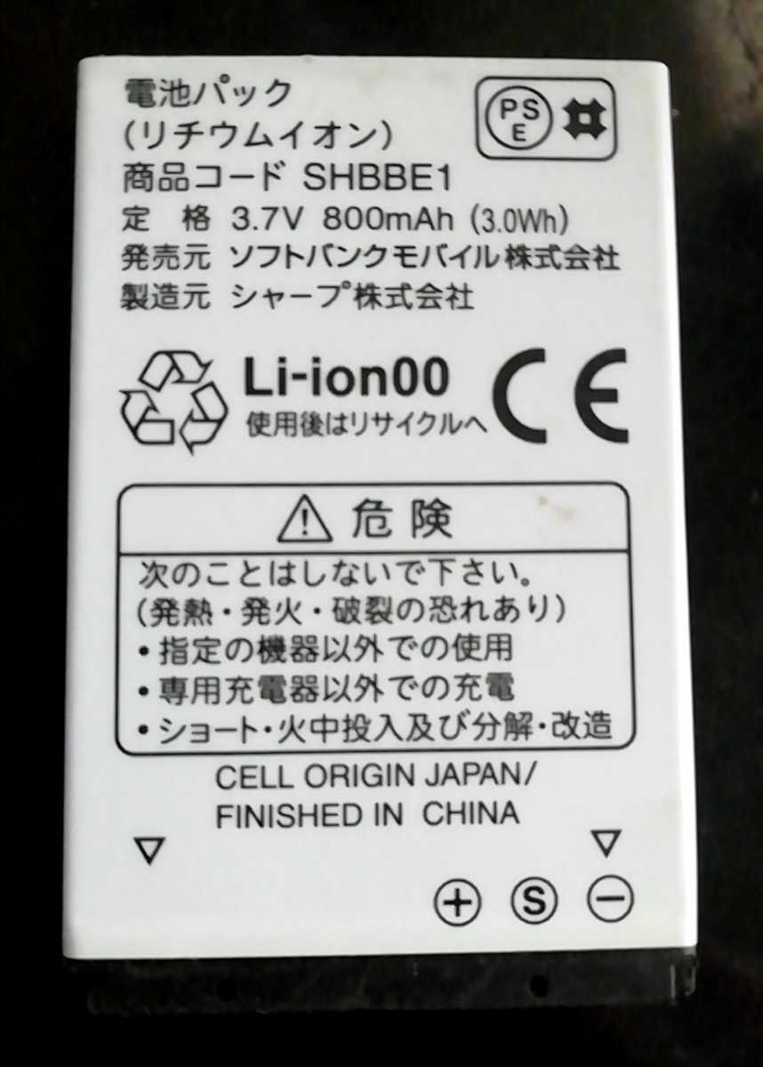 【中古】ソフトバンクSHBBE1純正電池パックバッテリー【充電確認済】