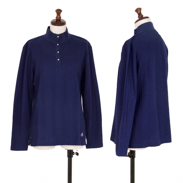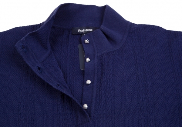 | ポールスチュアート スポーツPaul Stuart SPORT マルチストライプ織りハイネックカットソー 青L |