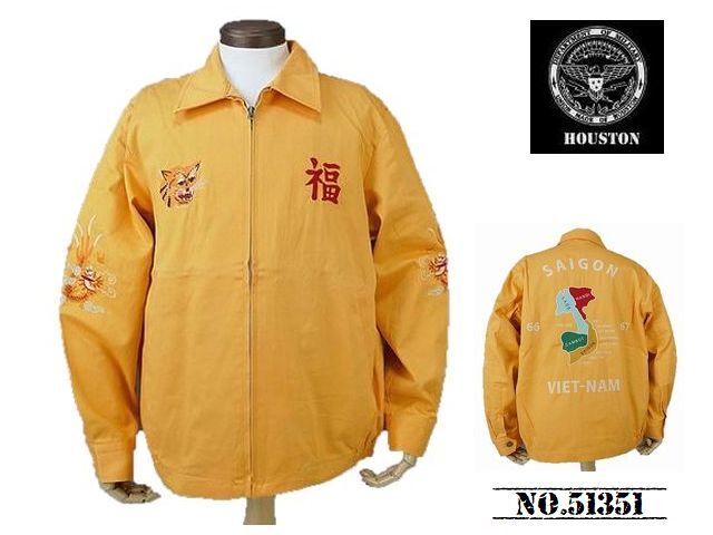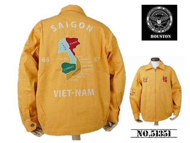 【送料無料 25%OFF】HOUSTON ヒューストン コットンツイル ベトジャン VIETNAM JUMPER 「MAP」 NO.51351 YELLOW(ORANGE) _Lサイズ