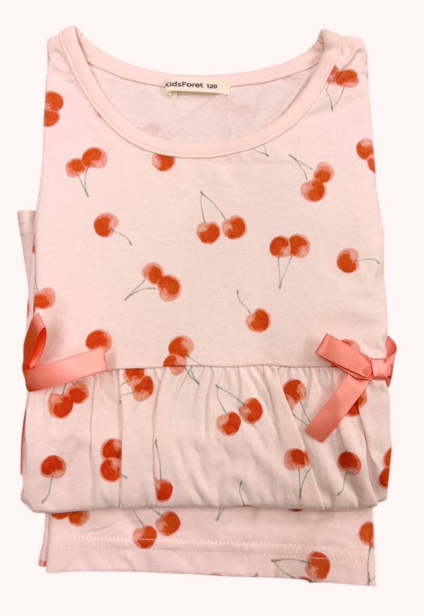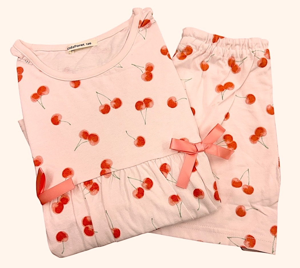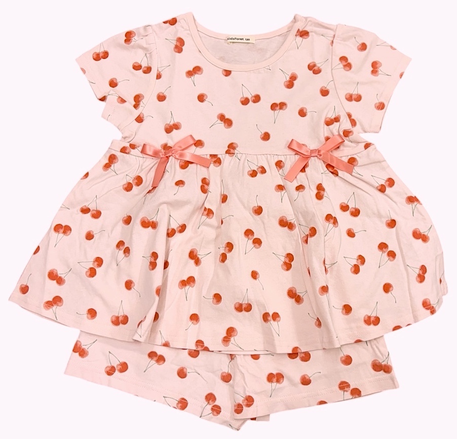即決 新品タグ付 キッズフォーレ Kids Foret★さくらんぼ柄 天竺生地★半袖パジャマ ハーフパンツ★130cm 9-10才目安 ¥2200