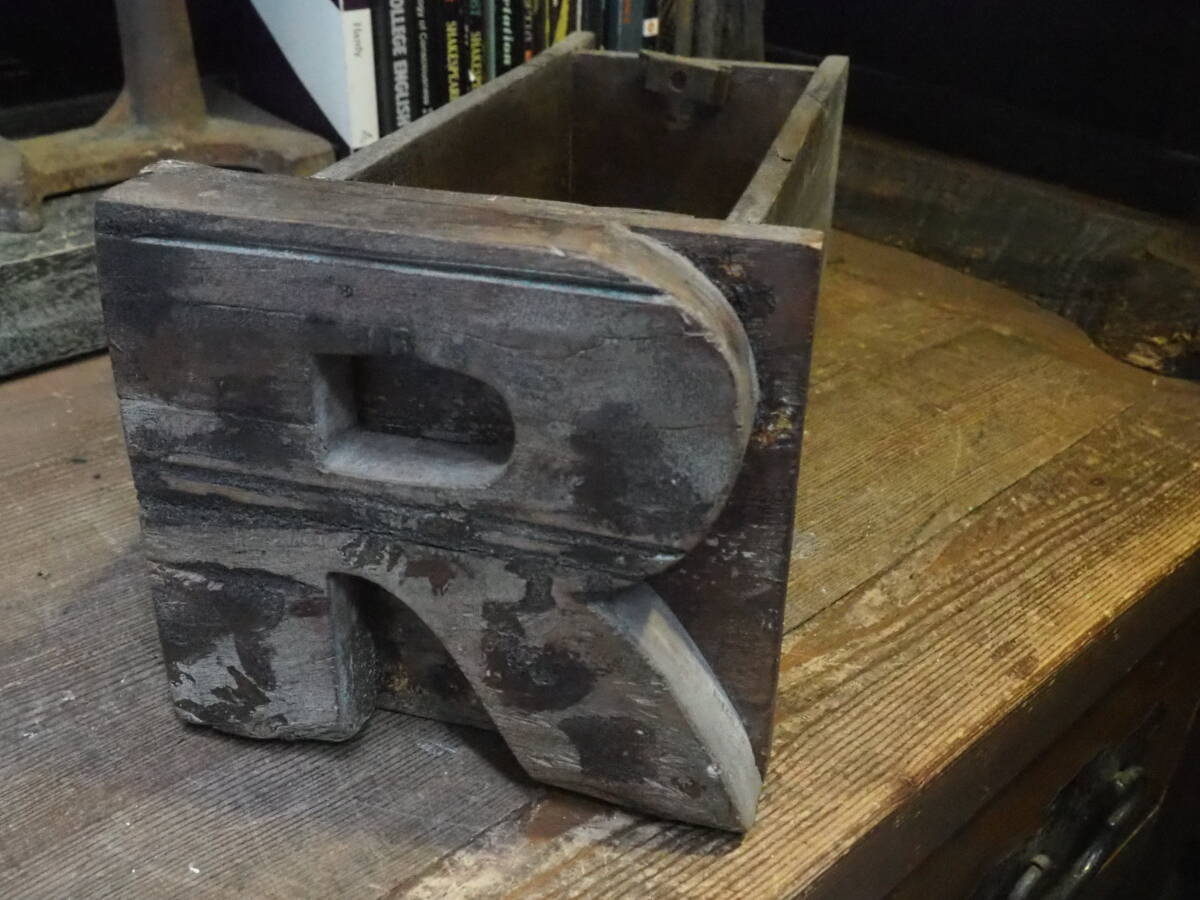 アルファベットを象ったデザインと丸みを帯びた材の函です。