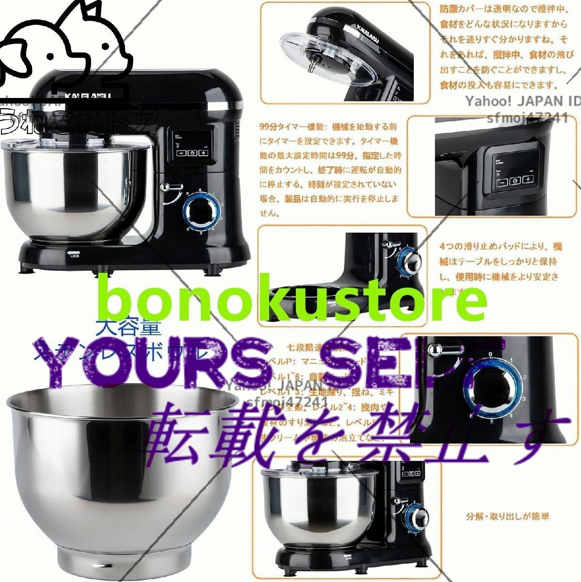 スタンドミキサー 業務用ミキサー 5L大容量ボウル 7段階変速 低騒音 混ぜる・練る・泡立てる 多機能メタルミキサー パンこね機 家庭用