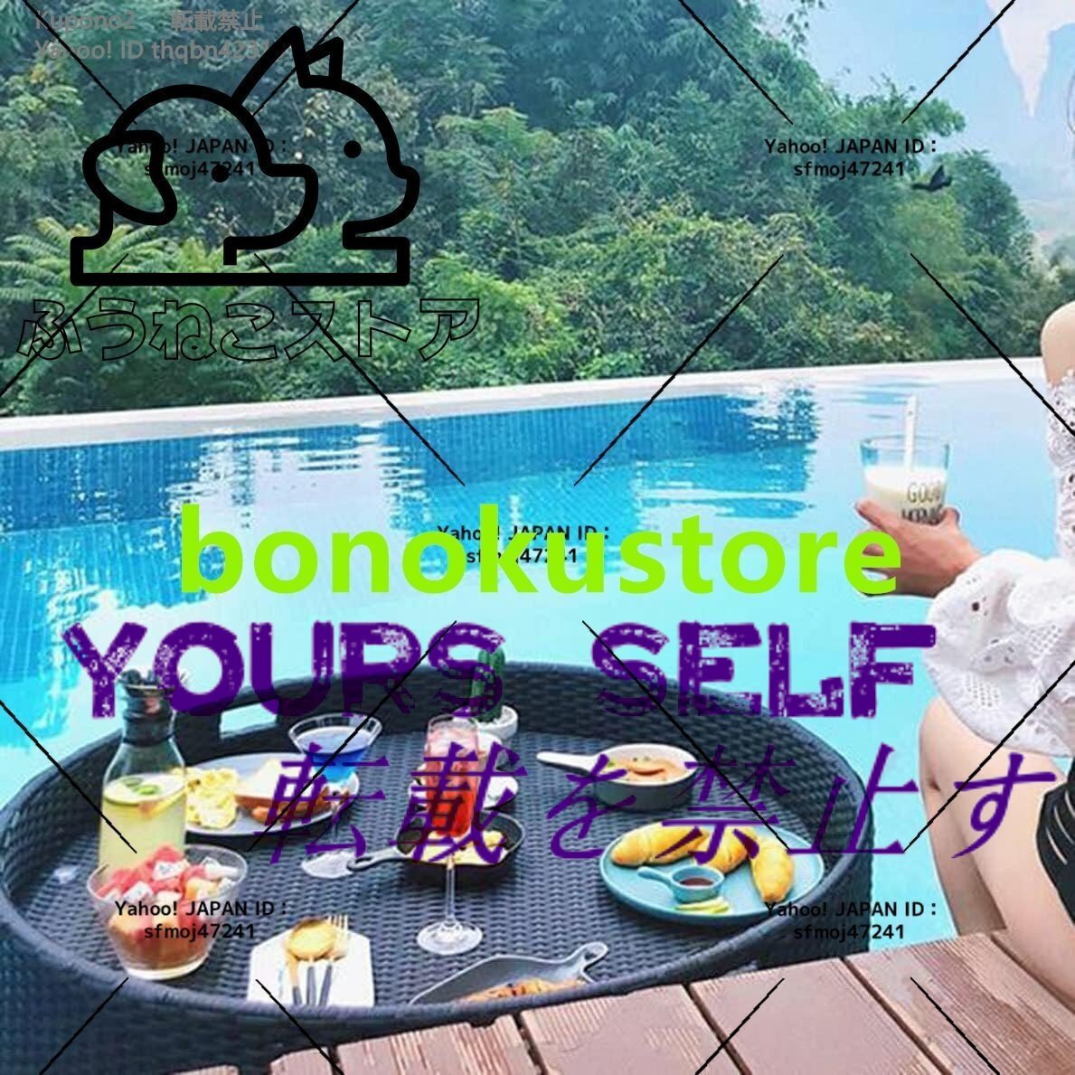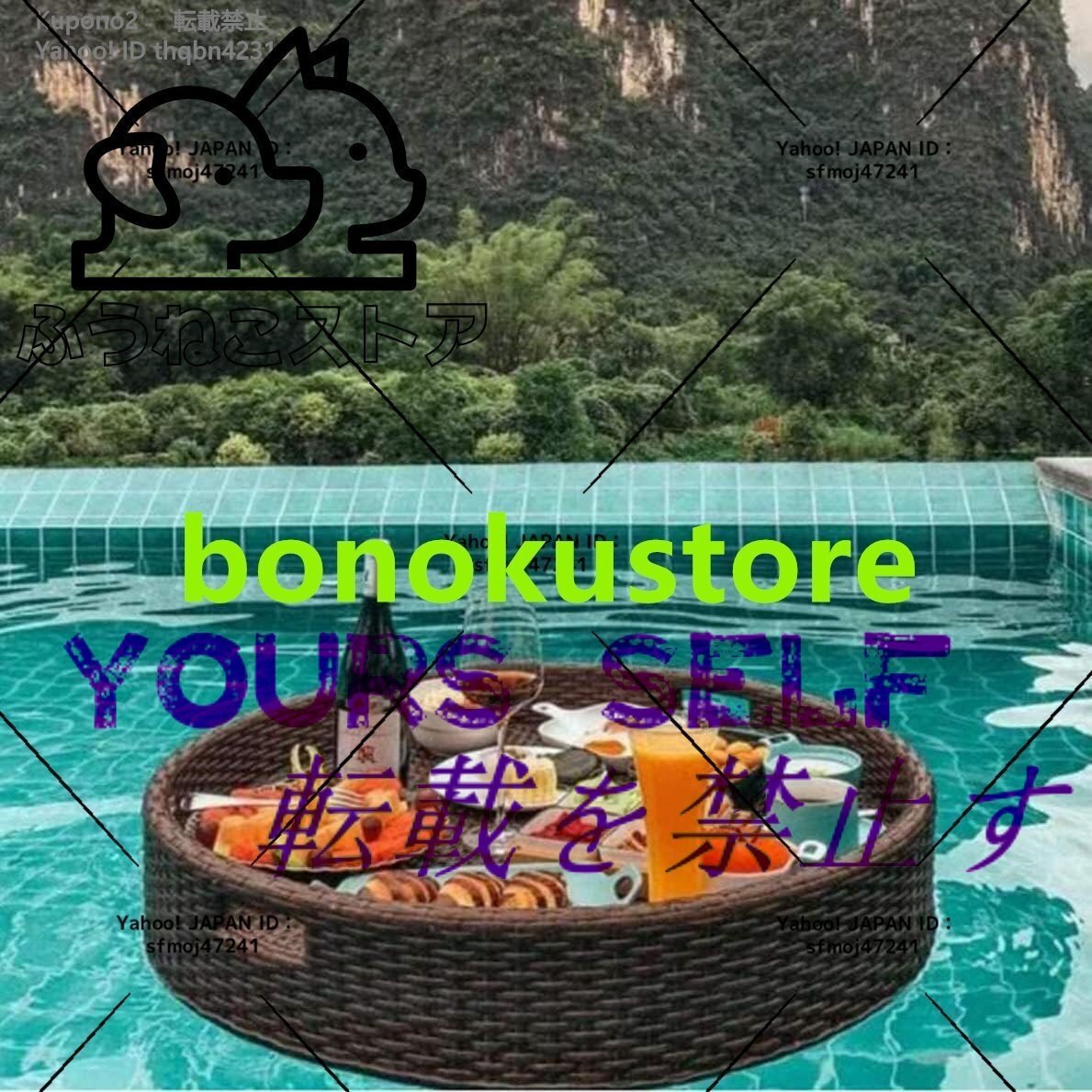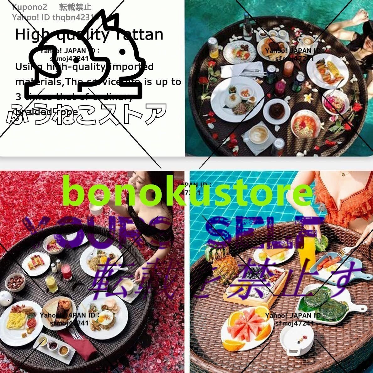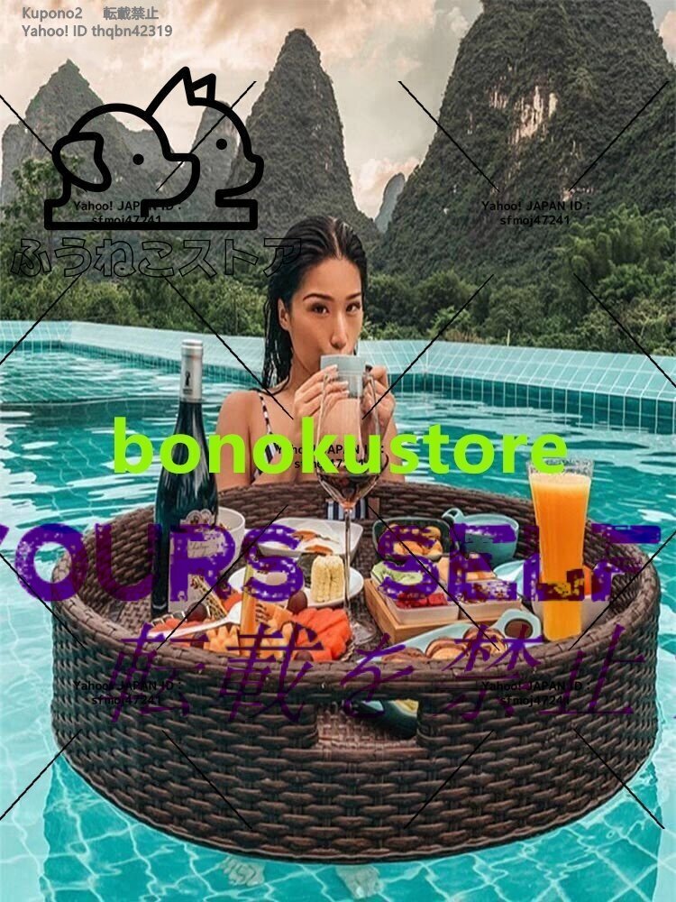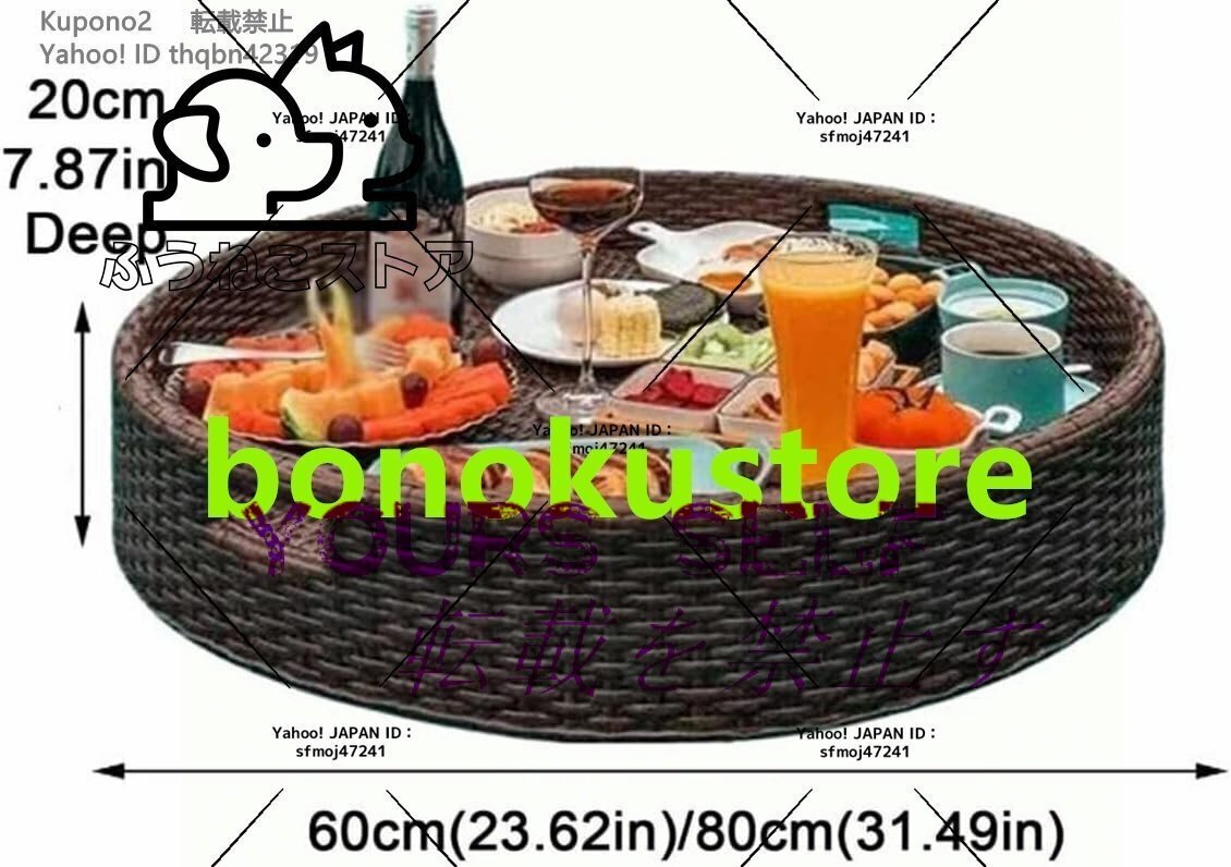 ラタン編みサービングトレイ、スイミングプールフローティングトレイテーブル、水面フローティングディスク、多機能フローティング朝食トレ