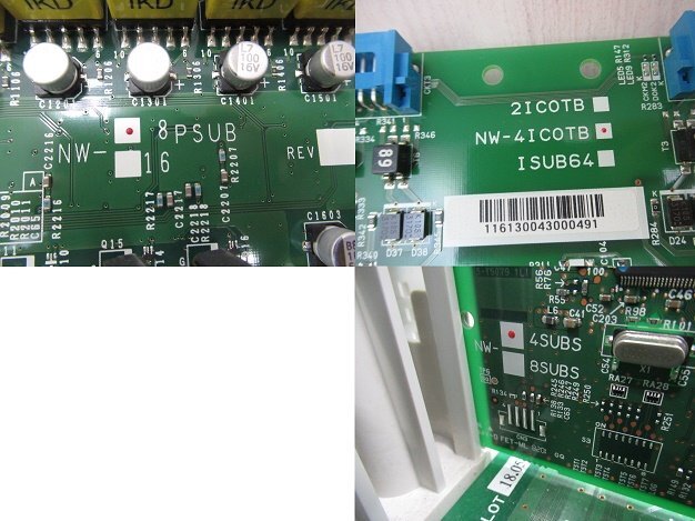 | ●内容 ◇ NW-CME ×1 ◇ NW-MCU(EX) ×1 ◇ NW-DSPU ×1 ◇ NW-8PSUB ×1 ◇ NW-4ICOTB ×1 ◇ NW-4SUBS ×1 岩通 Frespec フレスペック 主装置 MCU-EX V2.01 ポート64P ひかり電話4ch VML 2ch 6時間 動作確認済みです。 全体的に日焼けがあります(写真より日焼けがあります) ●商品の状態ランク 【 カ 】 [ア] 新品 [イ] 未使用品 [ウ] 美品 [エ] キレイ (ほぼ美品) [オ] キレイメ (欠点がわずか) [カ] 普通 [キ] 欠点がやや気になる [ク] 欠点がかなり気になる [ケ] 使用感最大 [コ] ジャンク ●補足説明 本商品は中古品となります。 写真では分かりにくいキズ・汚れ・欠けなどの使用感があります。 予めご理解・ご了承頂きますようお願いいたします。 【中古品となりますので以下の点を予めご了承ください】 本商品は中古品となります。 新品同様の外観・使用感をお求めの場合はご入札をお控えください。 中古品の特性・性質をご理解頂き、ご入札頂くようお願いいたします。 写真をご覧いただく環境によって機器の色味に若干の差が 出ます事を予めご了承ください。 中古品となりますので経年変化で日焼けの色味が強くなる場合が ありますので予めご了承ください。 写真に写るものが全てとなります。付属品は写真にてご確認ください。 お手数ですが一番最後までお読みいただきご理解いただいた上でご入札ください。 ●出品担当者 μ2025/04/07 市村 yama |