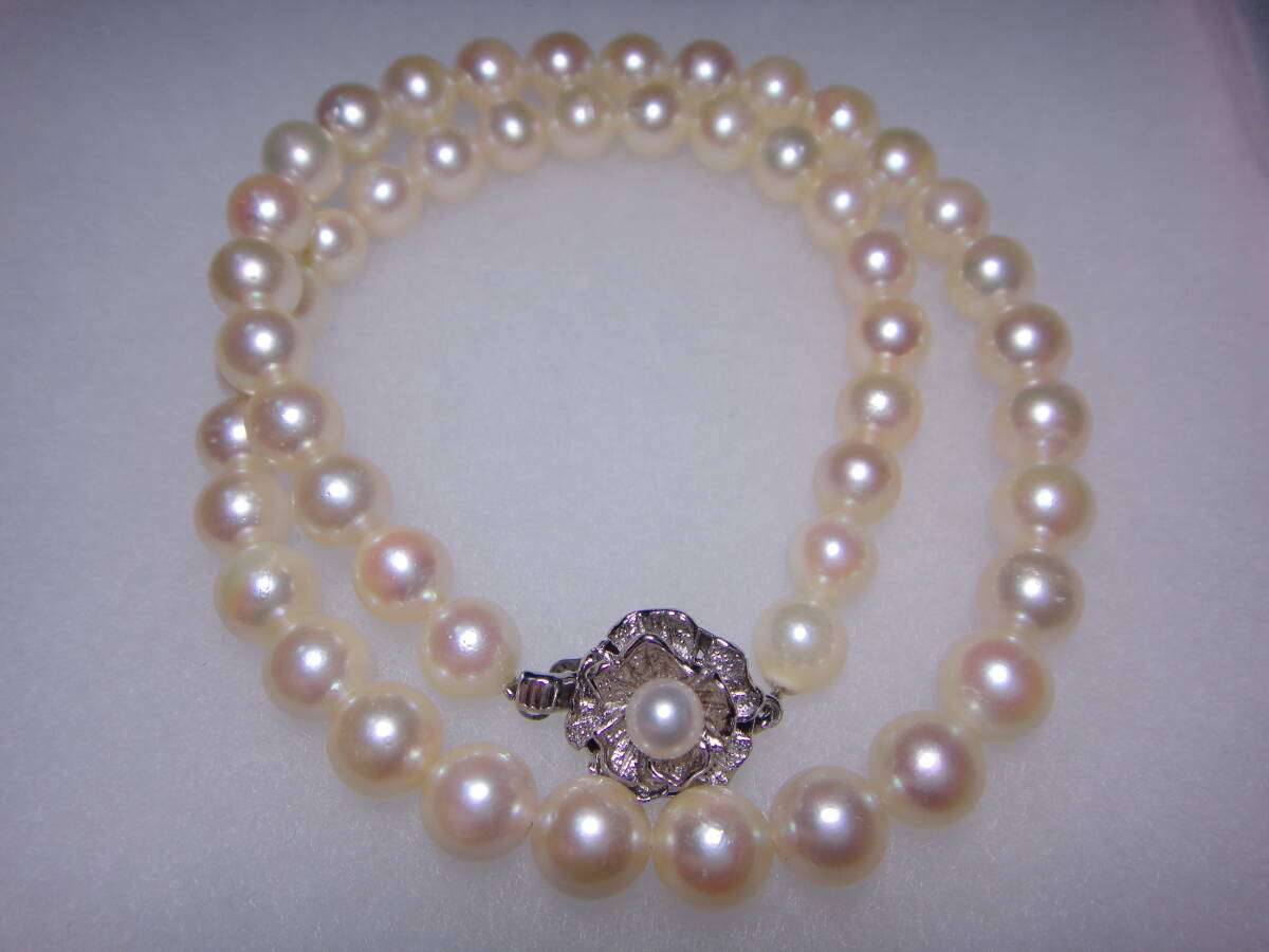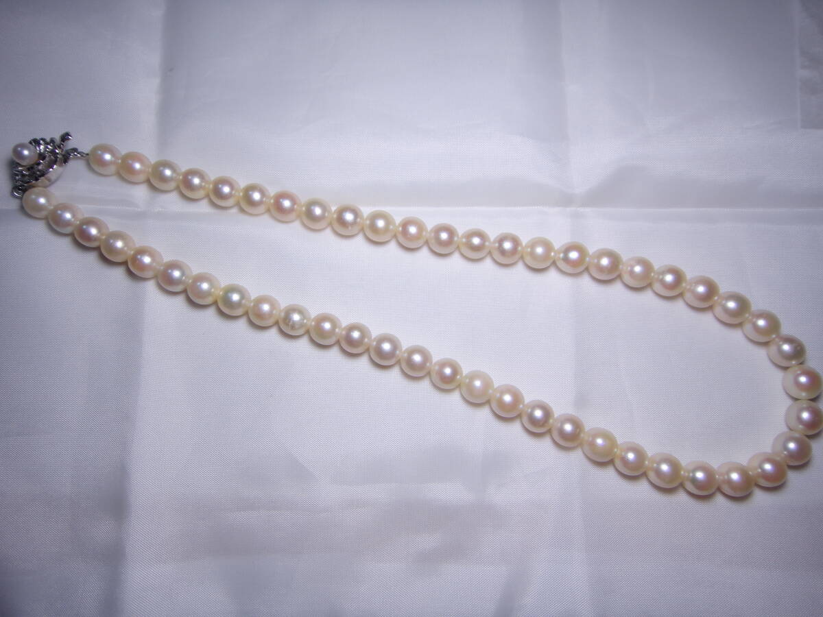 アコヤ真珠 本真珠 本パール ネックレス 大玉! 約7.5~8㎜玉 ツヤテリ良 ナイロンワイヤー糸替え済 約40㎝ ヴィンテージ D197