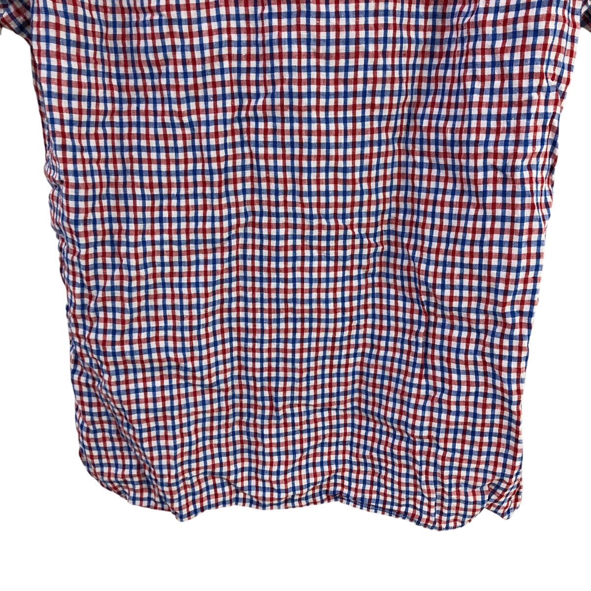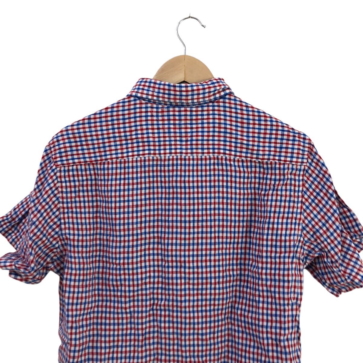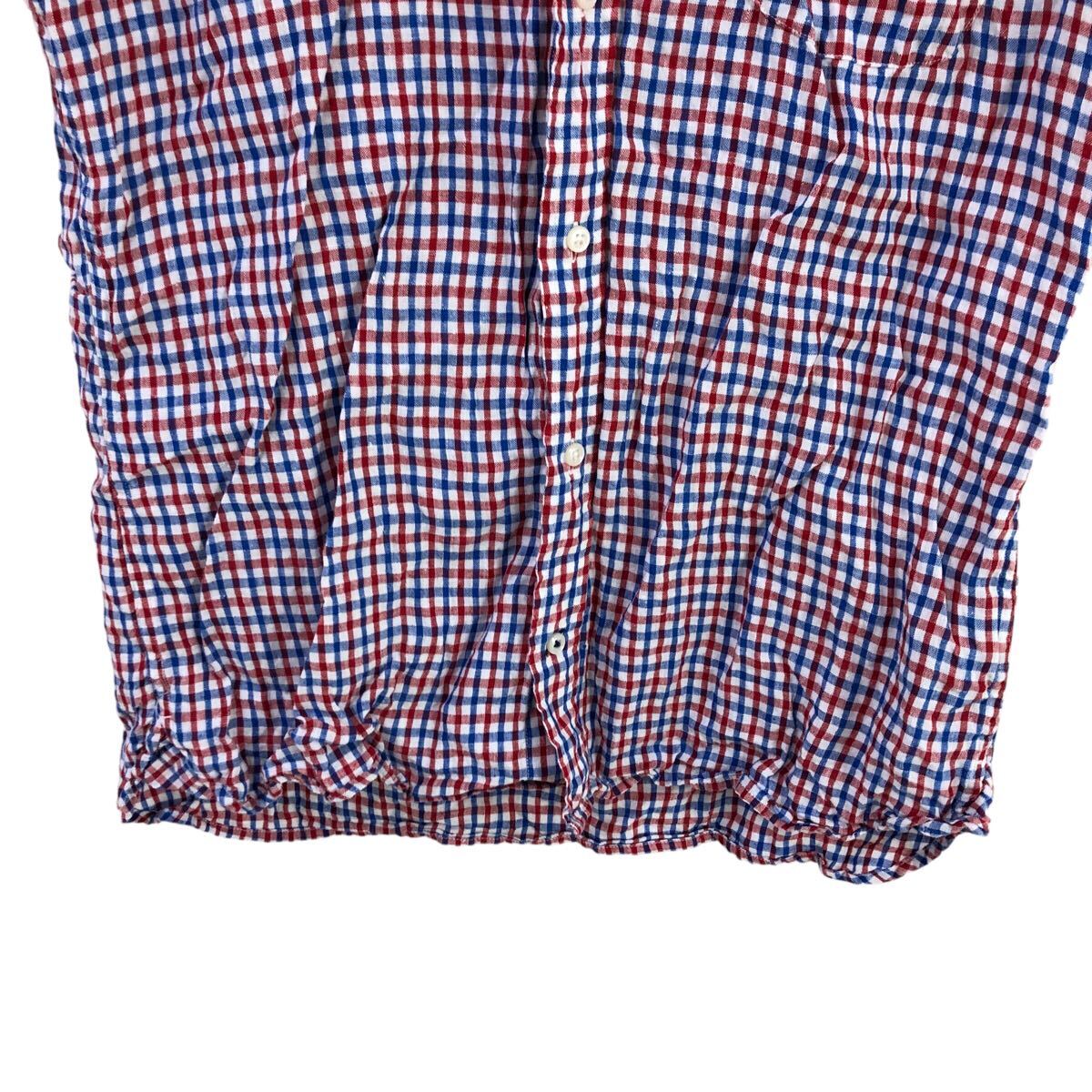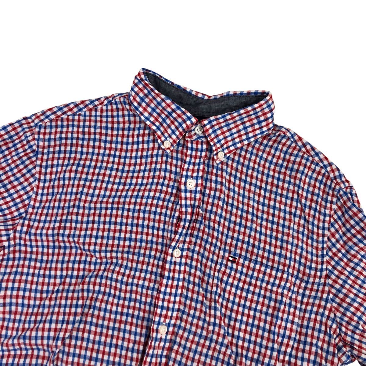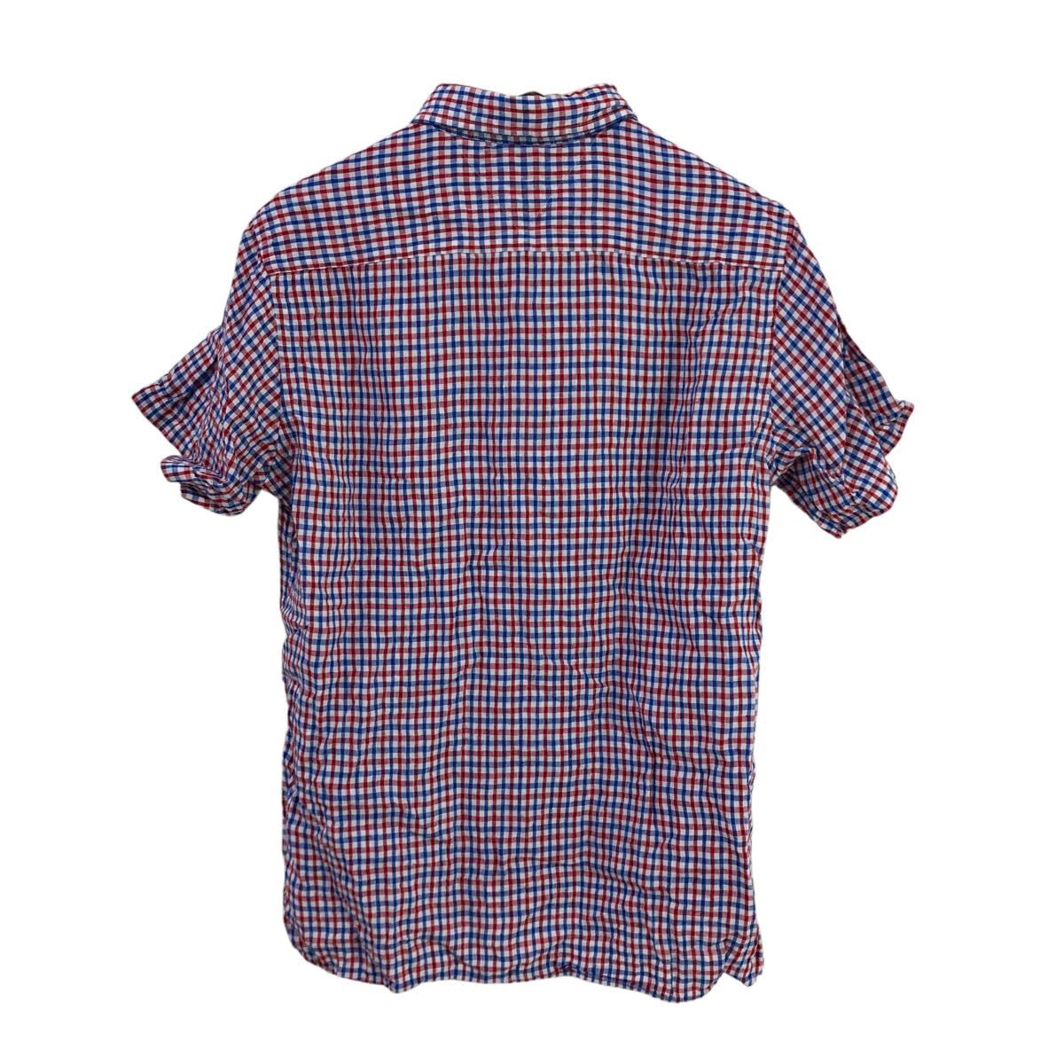 ND276-21 TOMMY HILFIGER トミーヒルフィガー 半袖 ボタンダウン シャツ トップス 羽織り フロントボタン 麻100% レッド系 総柄 メンズ L