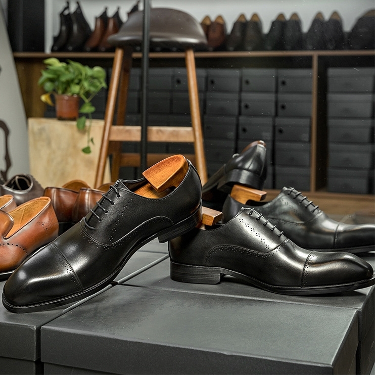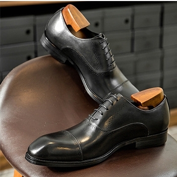 ビジネスシューズ メンズシューズ ロングノーズ 紐靴 牛革 本革 革靴 フォーマル 紳士靴 通勤 快適 ブラック 24.5cm