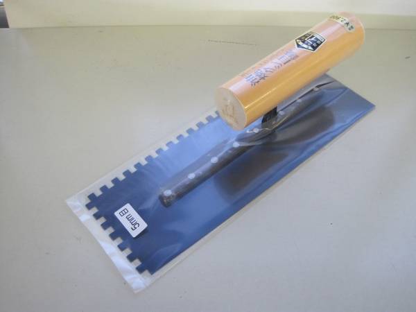 5㎜【油焼き クシ目鏝】 くしこて 225mm×75mm×5mm目 大型タイルのボンド塗り 石材接着剤塗鏝 タイルセメント用コテ