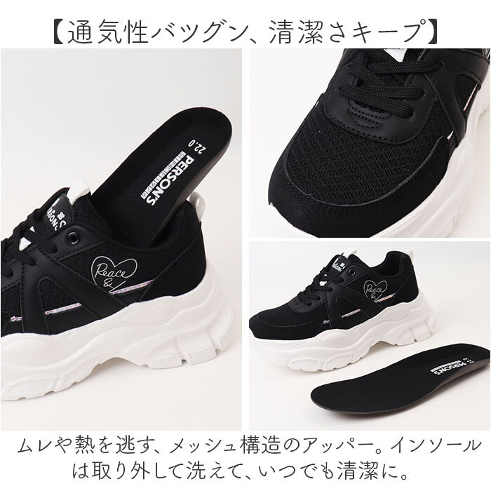 商品説明 | ・・【ボリュームソールがポイント☆】 ・おしゃれ女子も納得のデザイン!「PERSONS JUNIOR 厚底スニーカー」が登場。 ・【今っぽスニーカーをお探しの方へ♪】 ・インパクトのあるボリュームソールと、さりげないキラッとラインでトレンドな足元に! ・【軽量だから歩きやすい◎】 ・見た目に反して、ふわっと軽い履き心地。たくさん歩いても疲れにくく、毎日履きたくなる♪ ・【通気性バツグン、清潔さキープ】 ・ムレや熱を逃す、メッシュ構造のアッパー。インソールは取り外して洗えて、いつでも清潔に。 ・【さりげなくスタイルUPを叶える♪】 ・自然に盛れる、厚底ソールがポイント。さりげなくスタイルUPしてくれる、嬉しいシューズ。 ・【滑りにくいので雨の日も安心】 ・ソール部分は凸凹加工済み。雨の日の地面もしっかりグリップする、滑りにくい安心仕様。 |
