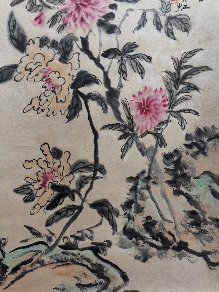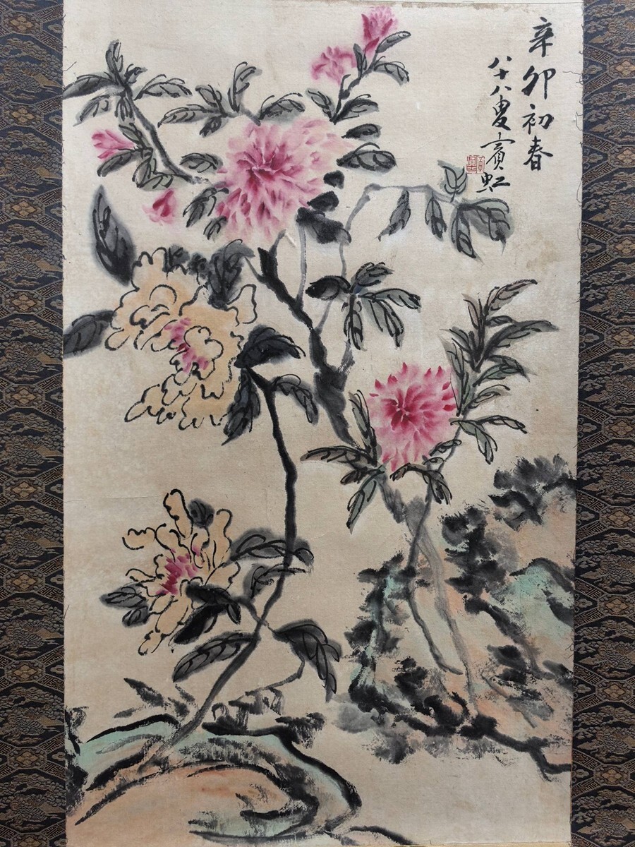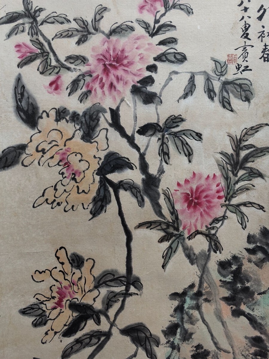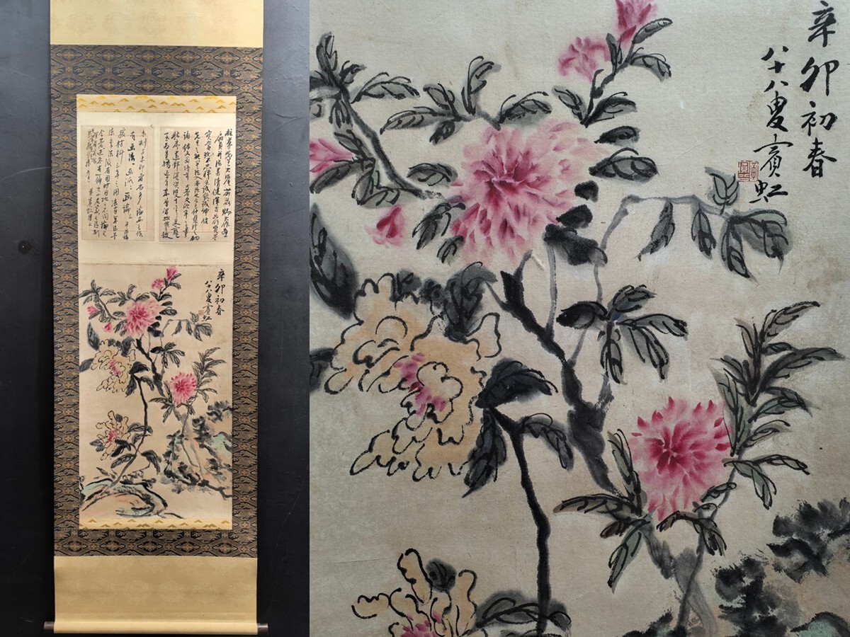 中国書画「黄賓虹 花卉図」肉筆紙本 掛け軸 墨寶妙品 書画立軸 巻き物 古美術 旧蔵出