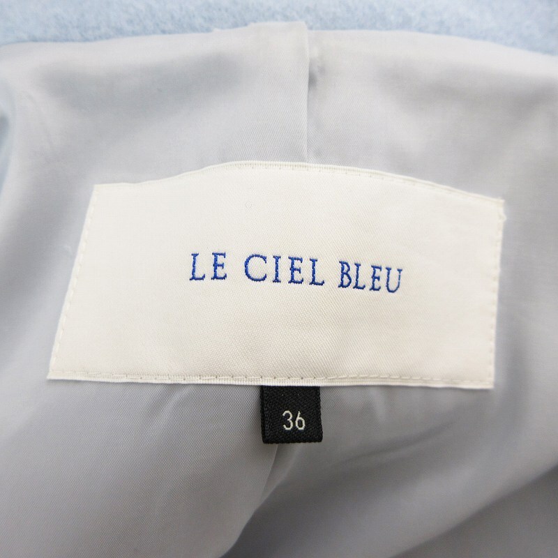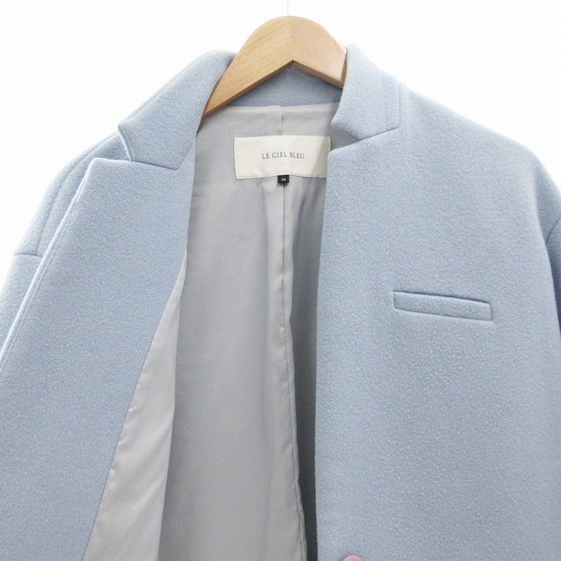 ルシェルブルー LE CIEL BLEU ソフトメルトンチェスターバルーンコート ウール 比翼ボタン ロング 17A69020 36 水色 ライトブルー