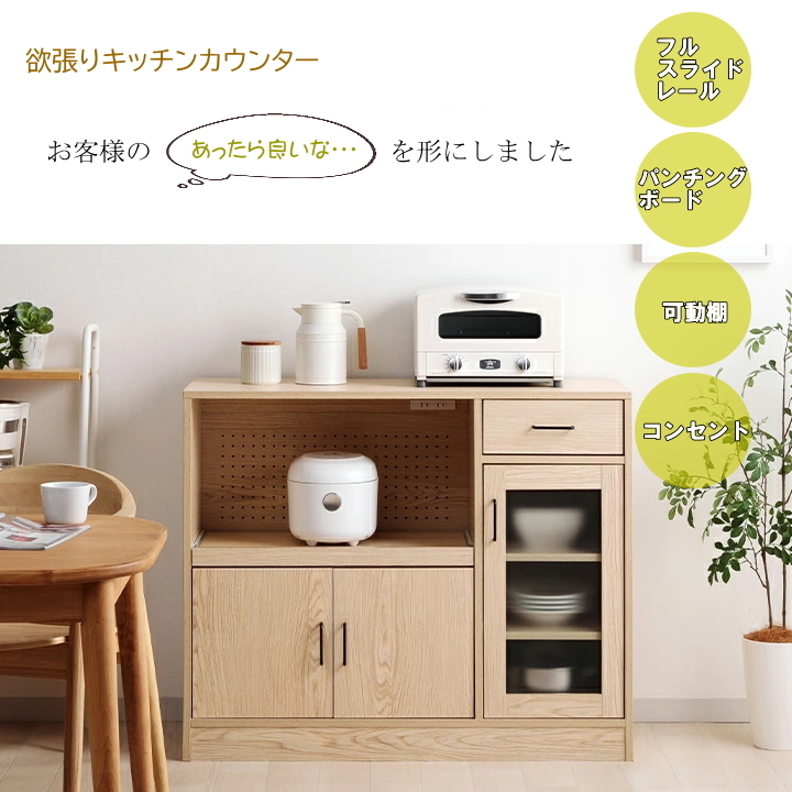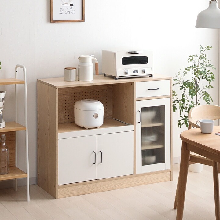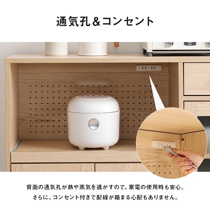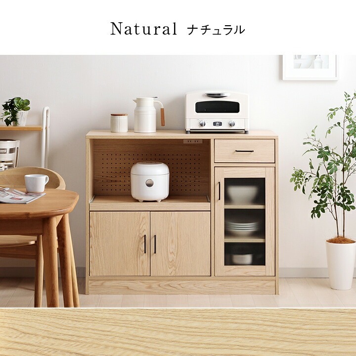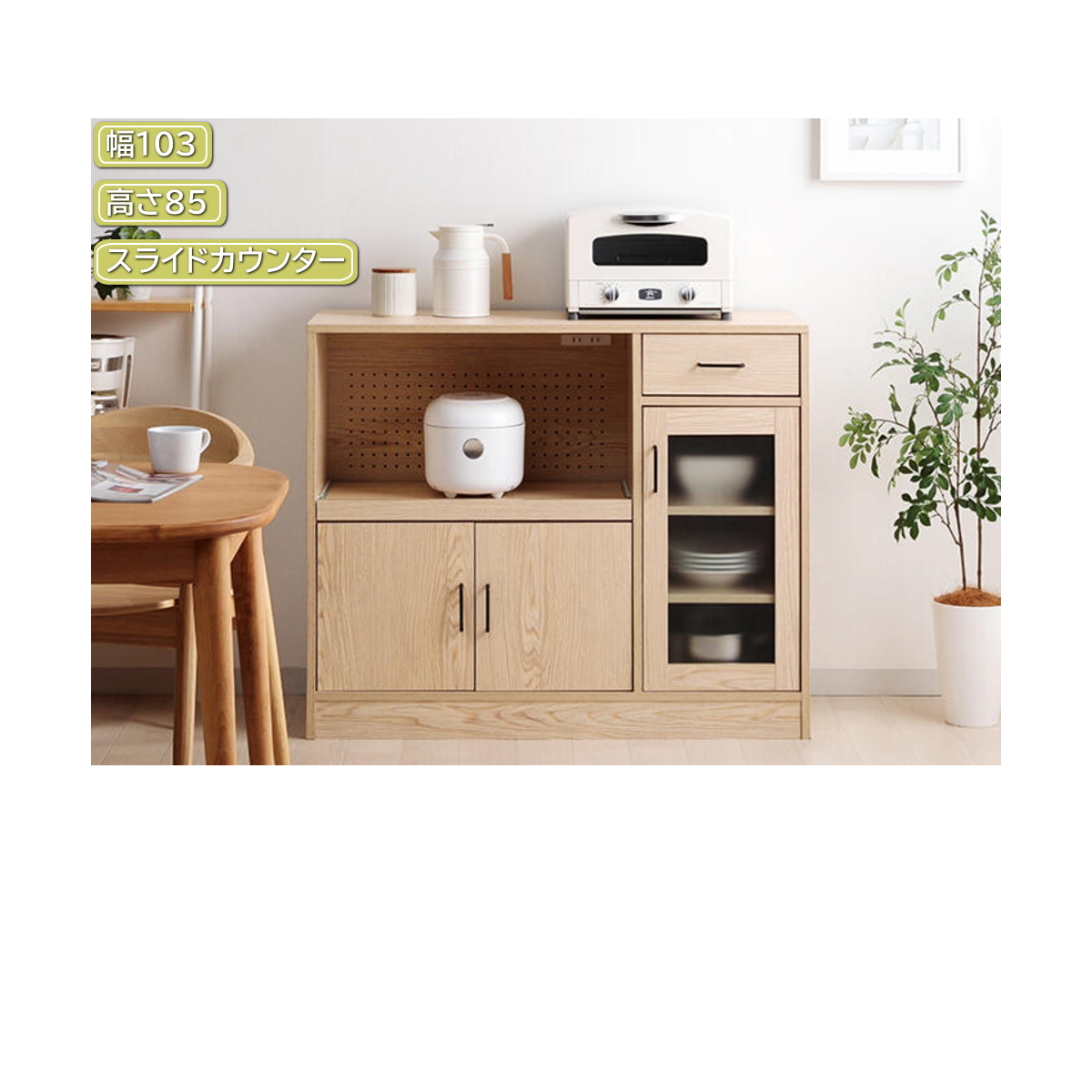 キッチンカウンター下 キャビネット カップボード ワゴン リビング収納 パントリー コンセント ライトブラウン ナチュラル
